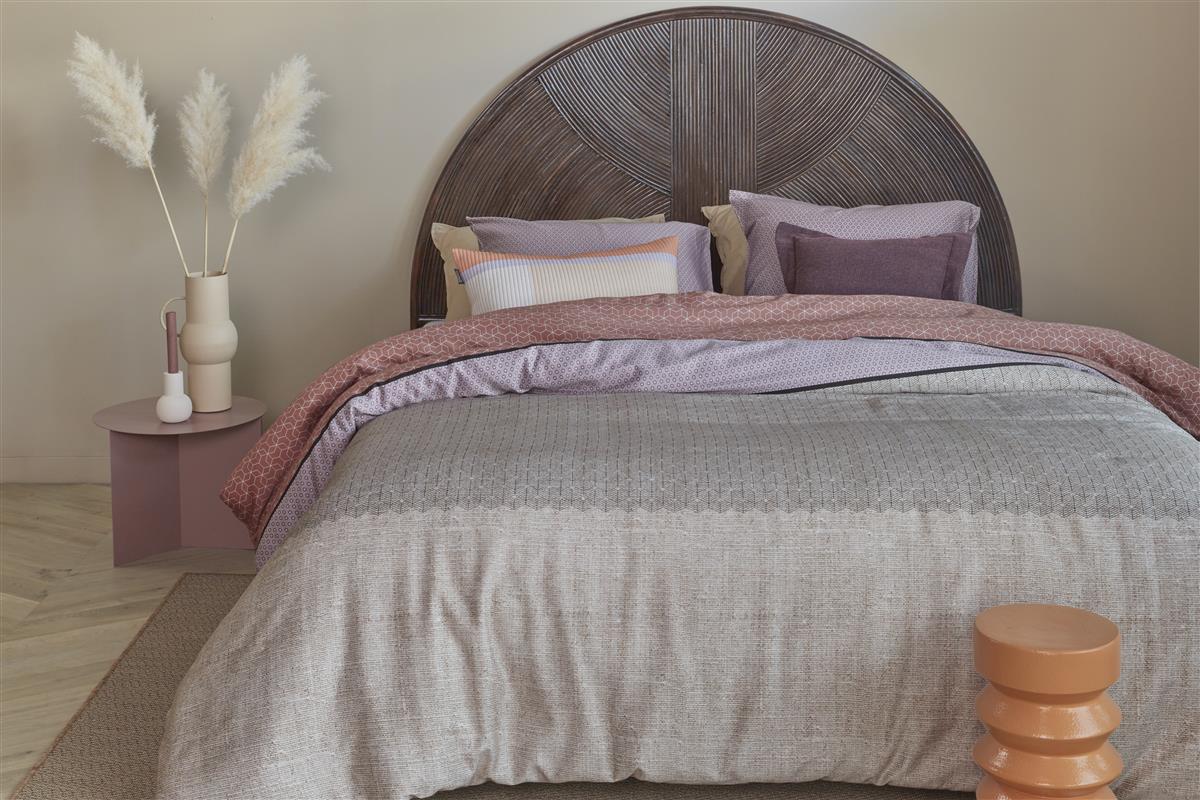 Het dekbedovertrek Norah mauve past perfect in een klassieke en moderne slaapkamer. Het dessin is verdeeld in banen die worden afgewisseld met verschillende verfijnde structuren en grafische motieven. In het dekbedovertrek Norah zijn verschillende mauvetinten verwerkt. Door de uitvoering in katoensatijn komen de kleuren prachtig tot hun recht en geeft het dekbed een luxe uitstraling.