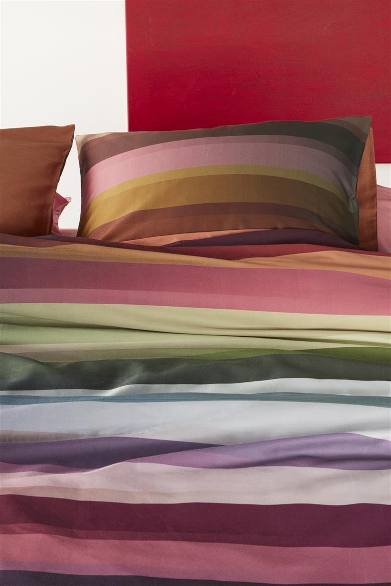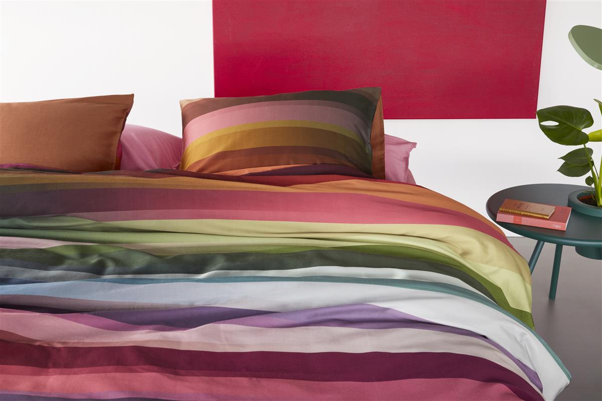 Wie van kleur houdt, zit met dekbedovertrek Bombay van Beddinghouse Dutch Design goed. Het opvallend kleurenspel in het dessin is opgedeeld in transparante strepen met een horizontaal kleurverloop in verschillende tinten. Het dekbedovertrek is hierdoor een eyecatcher in je slaapkamer en voelt door het gebruik van 100% katoensatijn ook nog erg zacht. Als rustige tegenhanger is gekozen voor een uni bruine kleur voor de achterzijde van het overtrek. Dekbedovertrek Bombay is verkrijgbaar in meerdere kleurstellingen.