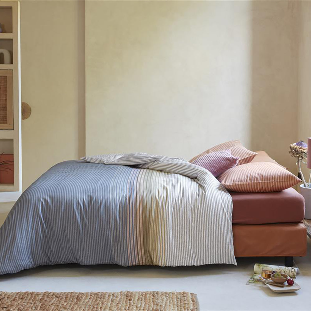 Waarom dekbedovertrek Gilded? Dekbedovertrek Gilded is opgebouwd uit banen met kleine diagonale streepjes met een subtiel kleurverloop. De pasteltinten zorgen voor een warme uitstraling. Het overtrek heeft een chique glans door de satijnweving.