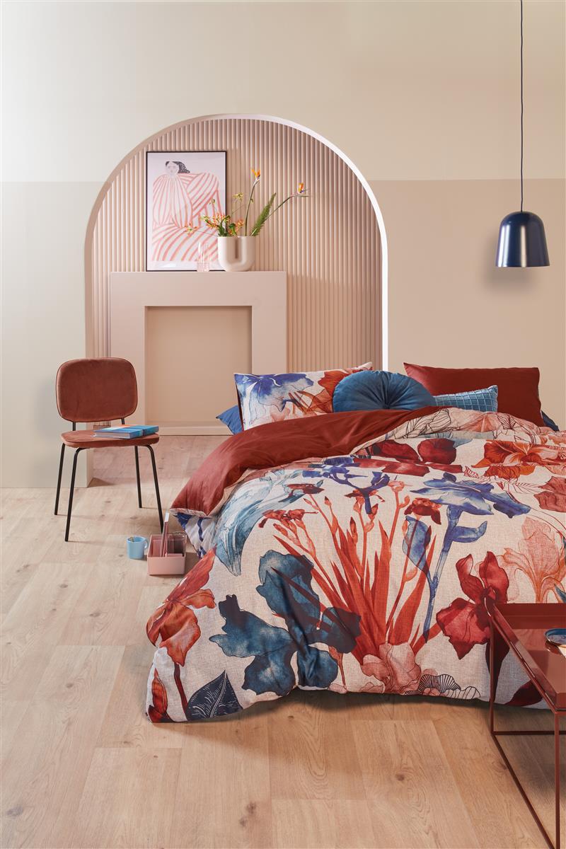Het dekbedovertrek Iris Field Red heeft een sfeervolle digitale print van aquarel geschilderde en getekende irissen. Het moderne dekbedovertrek heeft een chique glans door de satijnweving. De achterzijde is voorzien van een effen rode kleur wat het overtrek een mooi contrast geeft. Beddinghouse wil mooie collecties ontwerpen waarbij er rekening wordt gehouden met mens en milieu. Daarom is Beddinghouse lid van het Better Cotton Initiative, met als doel de katoenteelt wereldwijd te verbeteren.