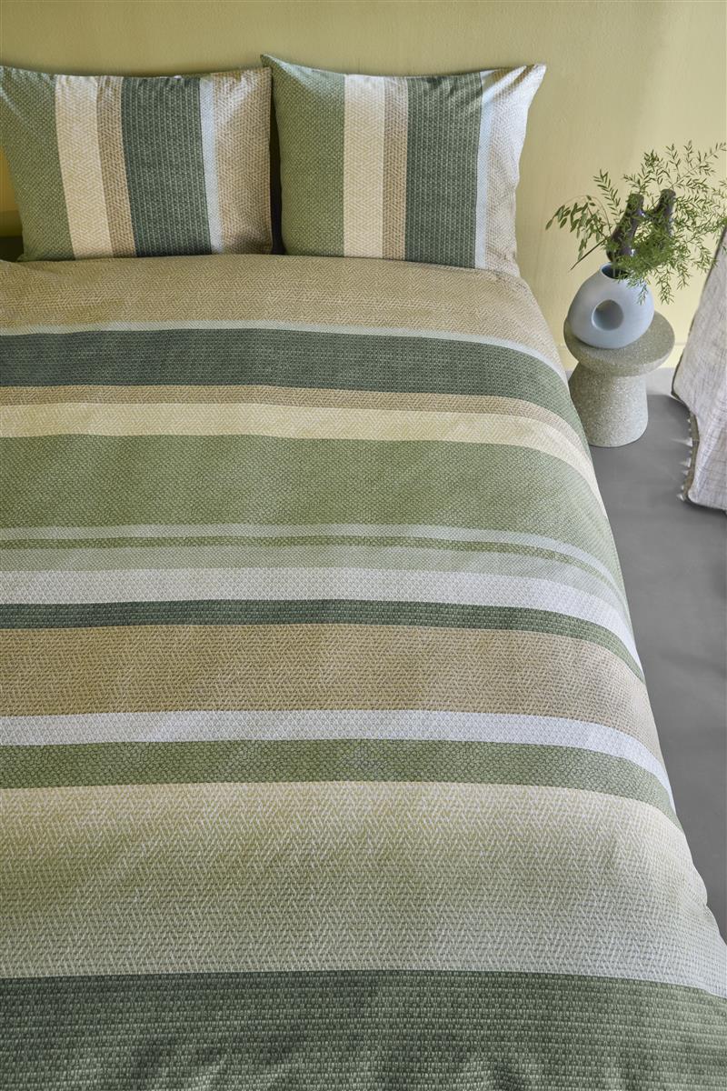 Het Beddinghouse Jorren dekbedovertrek combineert stoere weefstructuren met subtiele tinten voor een opvallend banendessin. De afwisseling van lijnen in olijfgroen, donkergroen, grijsgroen en lichtgroen zorgt voor een harmonieuze uitstraling, perfect passend in een moderne of industriële slaapkamer. Vervaardigd uit 100% katoen, biedt het dekbedovertrek ademend comfort voor een rustgevende nachtrust. Dit stijlvolle ontwerp is tevens verkrijgbaar in verschillende kleurstellingen.Duurzame verpakking - Het dekbedovertrek is mooi en duurzaam verpakt in een stoffen tasje gemaakt van hetzelfde materiaal als het overtrek. Je kunt het tasje eenvoudig hergebruiken.Over Beddinghouse - Beddinghouse is een Nederlands familiebedrijf dat gespecialiseerd is in het ontwerpen van trendy en stijlvol beddengoed. Elk seizoen bieden we een uitgebreide collectie dekbedovertrekken in prachtige kleuren, gemaakt van hoogwaardige materialen.Ons Assortiment - Bij Beddinghouse vind je niet alleen dekbedovertrekken, maar ook bedspreien, moltons, hoeslakens en badtextiel. Onze producten combineren stijl met comfort en duurzaamheid.Waarom Beddinghouse? - Innovatief Design: Altijd volgens de laatste trends.Hoogwaardige Kwaliteit: Duurzame en comfortabele materialen.Groot Assortiment: Voor iedere smaak een passend product.Hoogwaardige kwaliteitHet dekbedovertrek is gemaakt van 100% katoen, 144 TC. Het overtrek heeft over de gehele breedte aan beide zijden een dubbele instopstrook. De totale lengte van het dekbedovertrek is 250 cm. Dit is extra lang waardoor het dekbedovertrek gemakkelijk onder het matras gestopt kan worden en koude voeten worden voorkomen. Het overtrek is geschikt voor dekbedden van 200 cm, 210 cm of 220 cm. Better CottonDoor katoenproducten te kiezen van ons, steunt u onze investering in de missie van Better Cotton. Dit product is ingekocht via een mass balance systeem en bevat daardoor mogelijk geen Better Cotton. Zie bettercotton.org/learnmore.