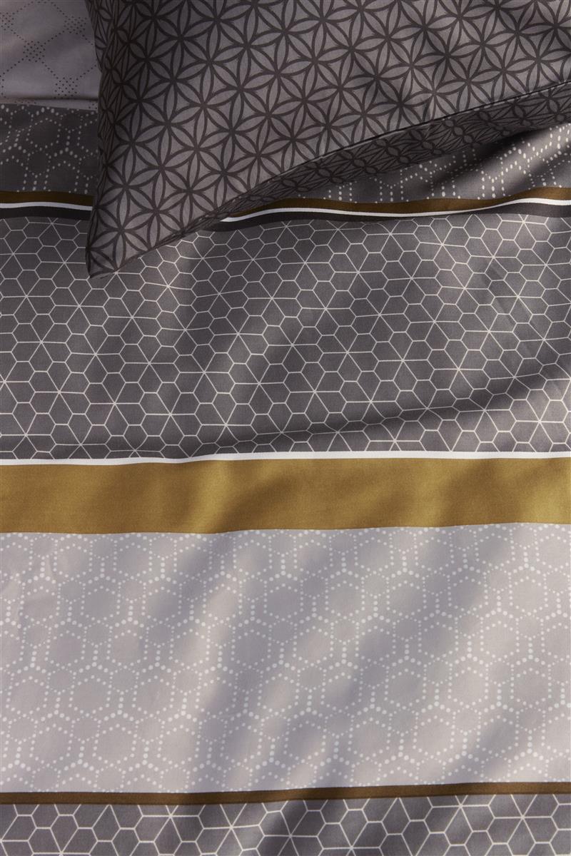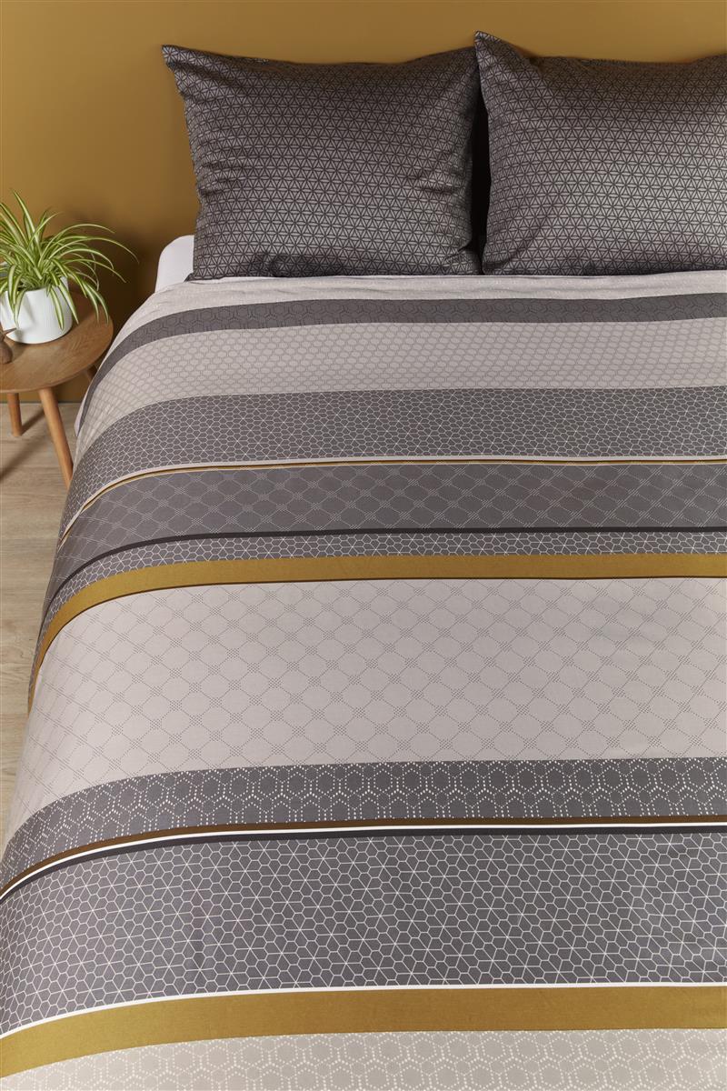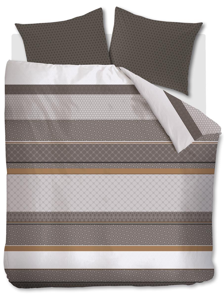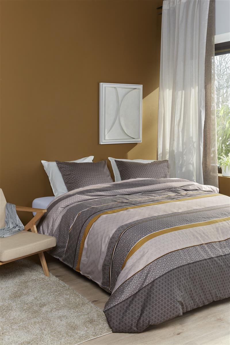 Dekbedovertrek Lacie heeft een moderne uitstraling. Het dessin is opgebouwd uit banen met verschillende grafische motieven en kleuren. De afwisseling tussen de verschillende grijs- en natuurtinten geven het dessin een stoere maar tegelijkertijd warme en sfeervolle uitstraling. Door de satijnweving heeft dit overtrek een chique glans en voelt het heerlijk zacht aan.