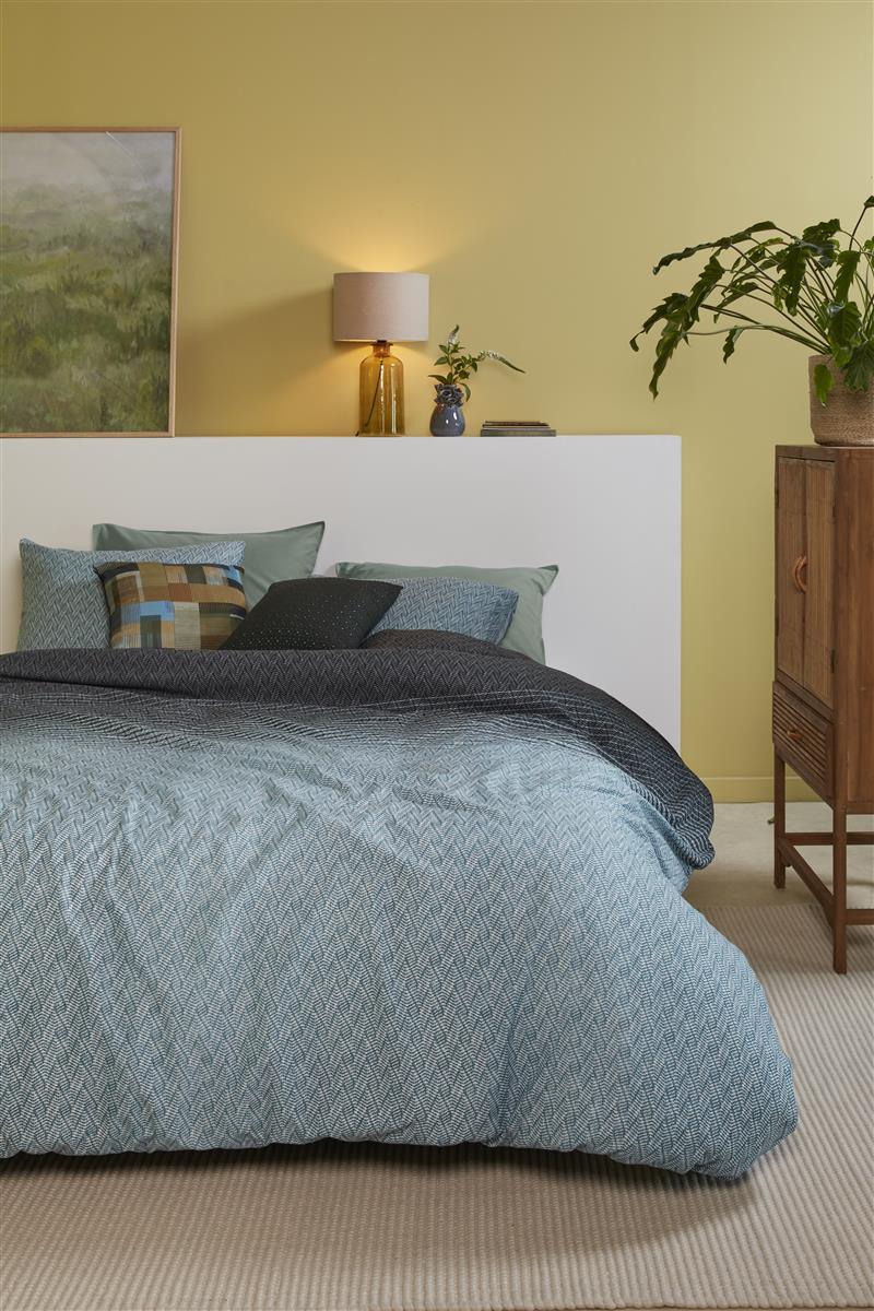 Dekbedovertrek Noa bestaat uit een all-over visgraatmotief met een subtiel kleurverloop. De bovenkant van het overtrek heeft een donkerekleur en loopt subtiel over naar een zachtere kleur.