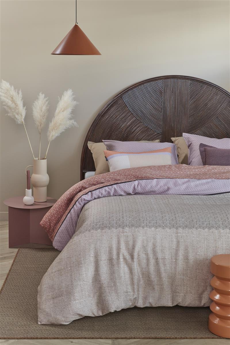 Het dekbedovertrek Norah mauve past perfect in een klassieke en moderne slaapkamer. Het dessin is verdeeld in banen die worden afgewisseld met verschillende verfijnde structuren en grafische motieven. In het dekbedovertrek Norah zijn verschillende mauvetinten verwerkt. Door de uitvoering in katoensatijn komen de kleuren prachtig tot hun recht en geeft het dekbed een luxe uitstraling.