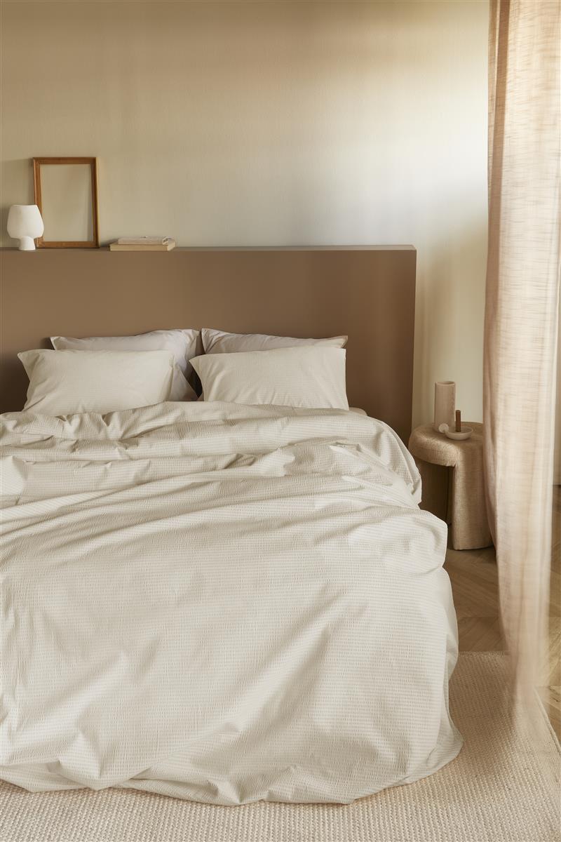 Ben je op zoek naar een mooi basic dekbedovertrek voor in je slaapkamer? Dan is het Summer dekbedoverterk van Beddinghouse. Een eenvoudig ontwerp, maar een prachtige uitstraling. Summer is uitgevoerd in een zand kleur. seersucker stof, een dunne rimpelige stof . De stof is los geweven met een zeer fijn garen. De stof is licht en ademend en door het sterk vochtabsorberende en goed ventilerende vermogen zorgt het dekbedovertrek voor een aangenaam gevoel. Ook voelt het dekbedovertrek heerlijk zacht en soepel om het lichaam. Het dekbedovertrek is comfortabel en luchtig, waardoor het dekbedovertrek bijdraagt aan jouw slaapcomfort.Duurzame verpakking - Het dekbedovertrek is mooi en duurzaam verpakt in een stoffen tasje gemaakt van hetzelfde materiaal als het overtrek. Je kunt het tasje eenvoudig hergebruiken.Over Beddinghouse - Beddinghouse is een Nederlands familiebedrijf dat gespecialiseerd is in het ontwerpen van trendy en stijlvol beddengoed. Elk seizoen bieden we een uitgebreide collectie dekbedovertrekken in prachtige kleuren, gemaakt van hoogwaardige materialen.Ons Assortiment - Bij Beddinghouse vind je niet alleen dekbedovertrekken, maar ook bedspreien, moltons, hoeslakens en badtextiel. Onze producten combineren stijl met comfort en duurzaamheid.Waarom Beddinghouse? - Innovatief Design: Altijd volgens de laatste trends.Hoogwaardige Kwaliteit: Duurzame en comfortabele materialen.Groot Assortiment: Voor iedere smaak een passend product.Hoogwaardige kwaliteitHet dekbedovertrek is gemaakt van 100% katoen seersucker. Het overtrek heeft over de gehele breedte aan beide zijden een dubbele instopstrook. De totale lengte van het dekbedovertrek is 250 cm. Dit is extra lang waardoor het dekbedovertrek gemakkelijk onder het matras gestopt kan worden en koude voeten worden voorkomen. Het overtrek is geschikt voor dekbedden van 200 cm, 210 cm of 220 cm.Better CottonDoor katoenproducten te kiezen van ons, steunt u onze investering in de missie van Better Cotton. Dit product is ingekocht via een mass balance systeem en bevat daardoor mogelijk geen Better Cotton. Zie bettercotton.org/learnmore.