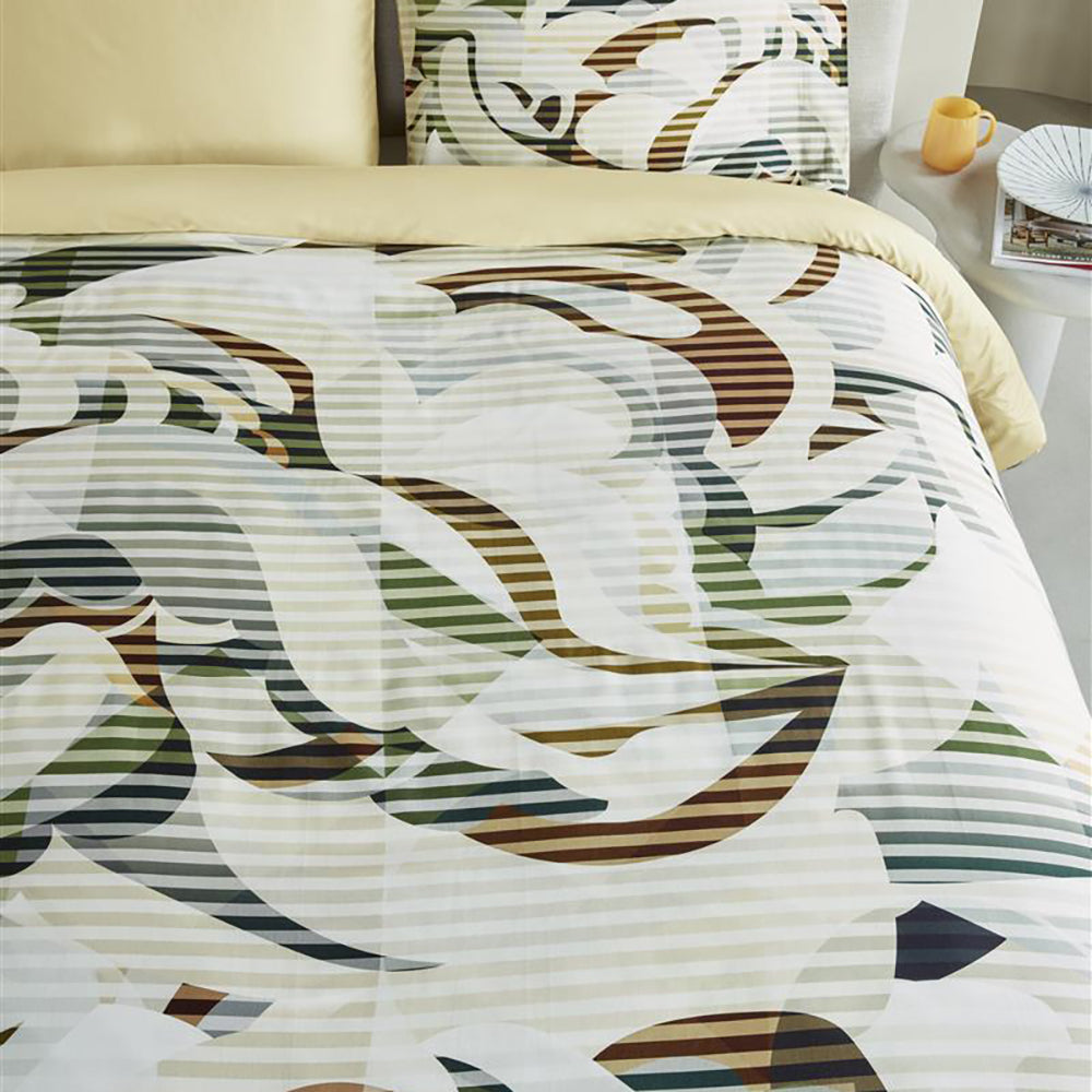 - De achterzijde van het overtrek en de kussenslopen hebben een effen kleur