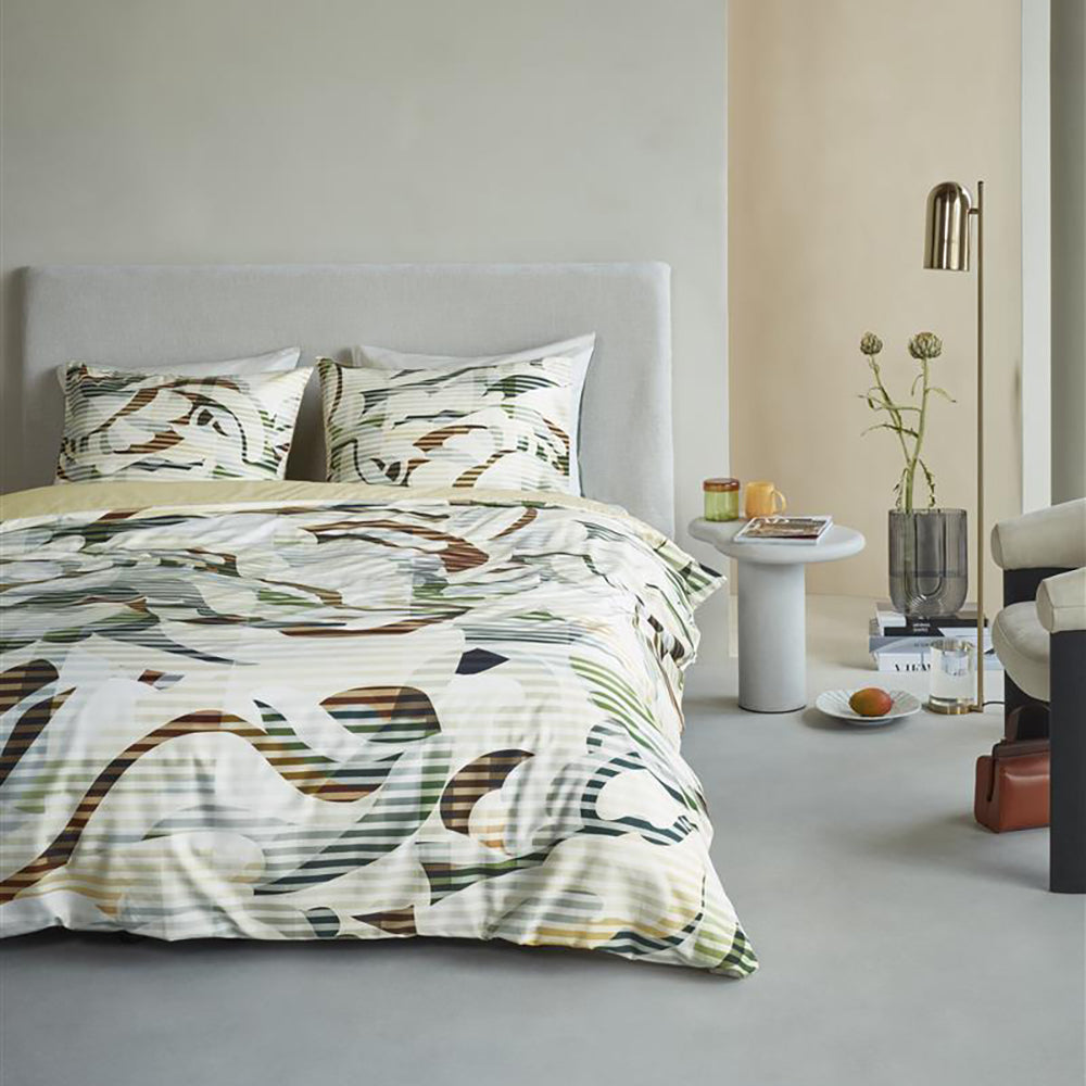 Dekbedovertrek Villanueva straalt ontspannen luxe uit, met dit overtrek in je slaapkamer kom je direct tot rust. Villanueva betekent ‘nieuwe stad’ en is geïnspireerd op de ronde vormen, die als een schilderachtig landschap van zachte wolken, op dit moment veel te zien zijn in de moderne interieurs. De kenner zal ook de vormentaal vanuit de tijd van het Kubisme herkennen. Dit maakt het overtrek de perfecte combinatie van hedendaags design en tijdloze verfijning. De achterzijde van het overtrek en de kussenslopen hebben een effen licht gele kleur. Kwaliteit Naast de print is de kwaliteit van het overtrek minstens zo belangrijk. Daarom zijn de overtrekken van Kardol By Beddinghouse gemaakt van 100% katoensatijn waardoor het overtrek een mooie glans heeft en heerlijk zacht aanvoelt. Het overtrek heeft een dubbele instopstrook en een totale lengte van 260 cm. Door deze extra lengte kan het dekbedovertrek gemakkelijk onder het matras worden gestopt en is het geschikt voor hoge matrassen. Het dekbedovertrek is passend voor dekbedden van 200 cm, 210 cm of 220 cm. Better Cotton Door katoenproducten te kiezen van ons, steunt u onze investering in de missie van Better Cotton.