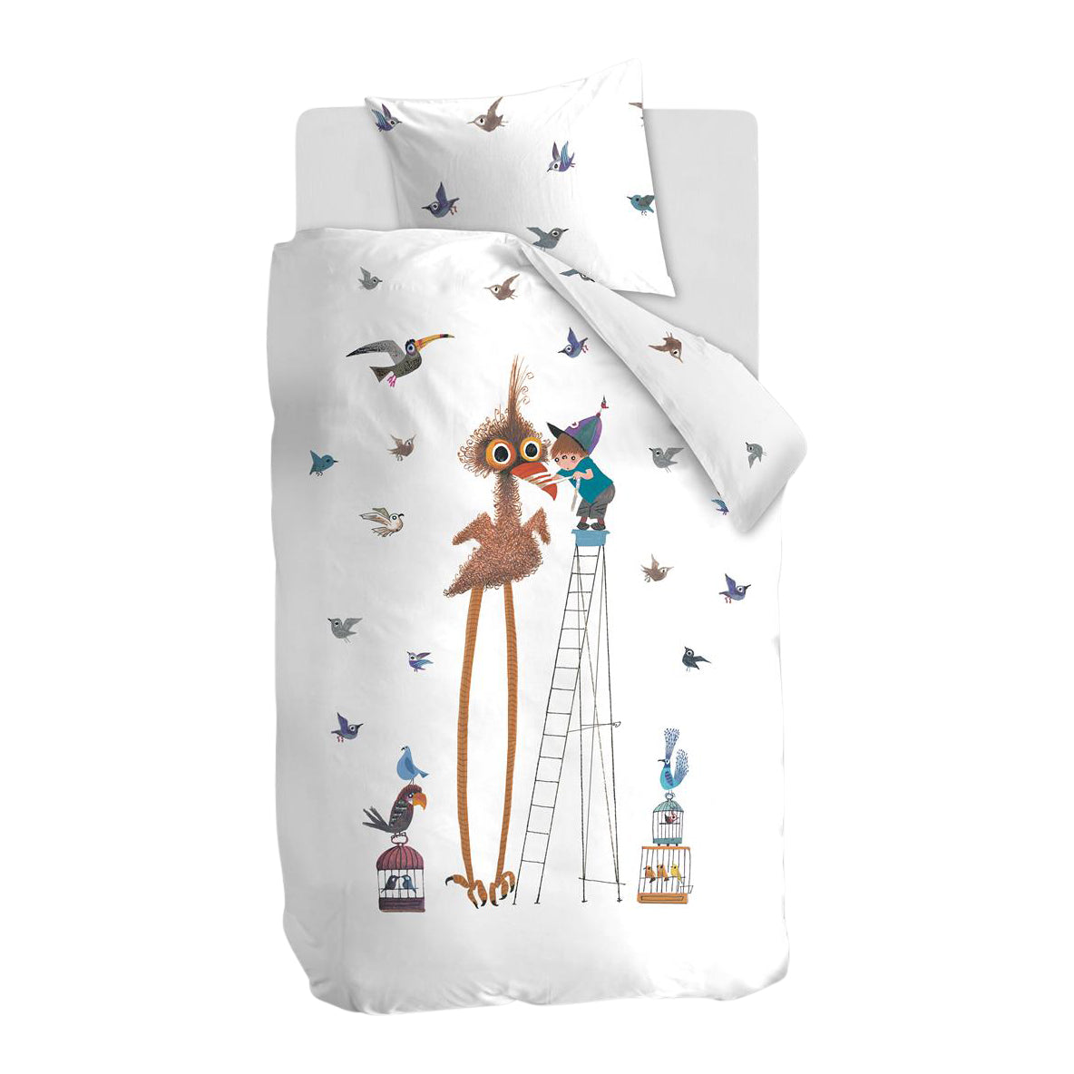 - Er staan vele vogels in verschillende kleuren afgebeeld op het overtrek