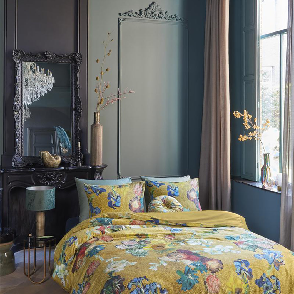 Waarom dekbedovertrek Partout? Het dessindekbedovertrek Partout des Fleurs is een vertaling van het Bouquet d’Anniversaire. Dit boeket is een traktatie van het Van Gogh Museum, en daarmee ook van Vincent zelf, ter ere van het 50-jarig jubileum van het museum. Dit gouden jubileum wordt gevierd met een prachtig boeket dat samengesteld is uit allemaal losse bloemen van verschillende bloemenschilderijen uit de eigen collectie van het museum. Je kunt bijvoorbeeld bloemen terugvinden uit de schilderijen: Irissen, Flesje met pioenrozen en blauwe ridderspoor, Vaas met Chinese asters en tuingladiolen, Zonnebloemen en natuurlijk de klassieke Amandelbloesem. Deze losse bloemen liggen op een gouden achtergrond, waardoor dit kleurrijke all-over dessin prachtig tot zijn recht komt. Het dekbedovertrek heeft een effen goudgele achterkant. Een uniek dessin voor een uniek moment in de geschiedenis van Van Gogh en het Van Gogh Museum.
