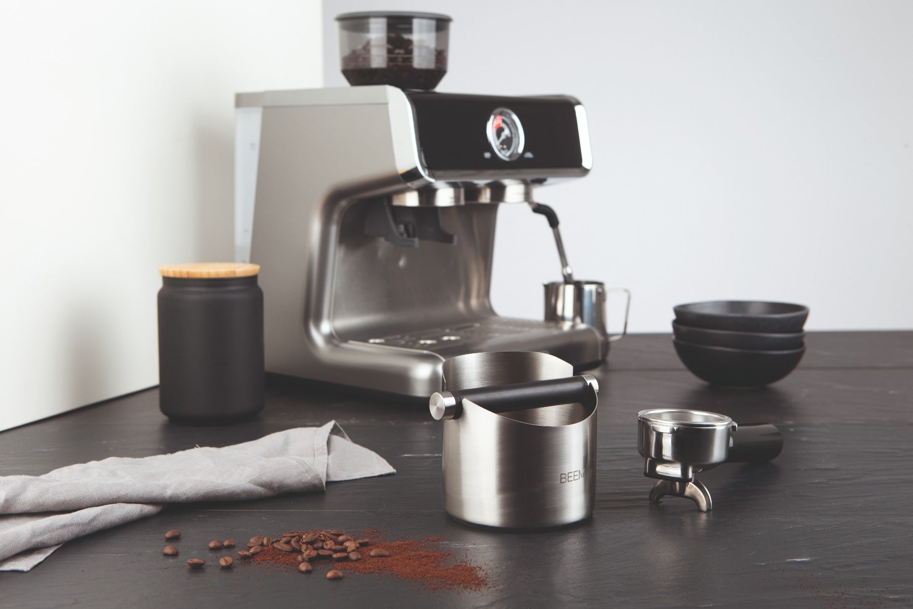 Iedereen die van espresso houdt, waardeert schone en gestructureerde processen, van het aanstampen tot het weggooien van het koffieafval na bereiding in de espressomachine. Dankzij deze uiklopbak van BEEM hoef jij niet langer naar de prullenbak te lopen om je koffieafval weg te gooien, want hiermee klop je het koffiedik zo uit de portafilter. Uitklopbak met handige features