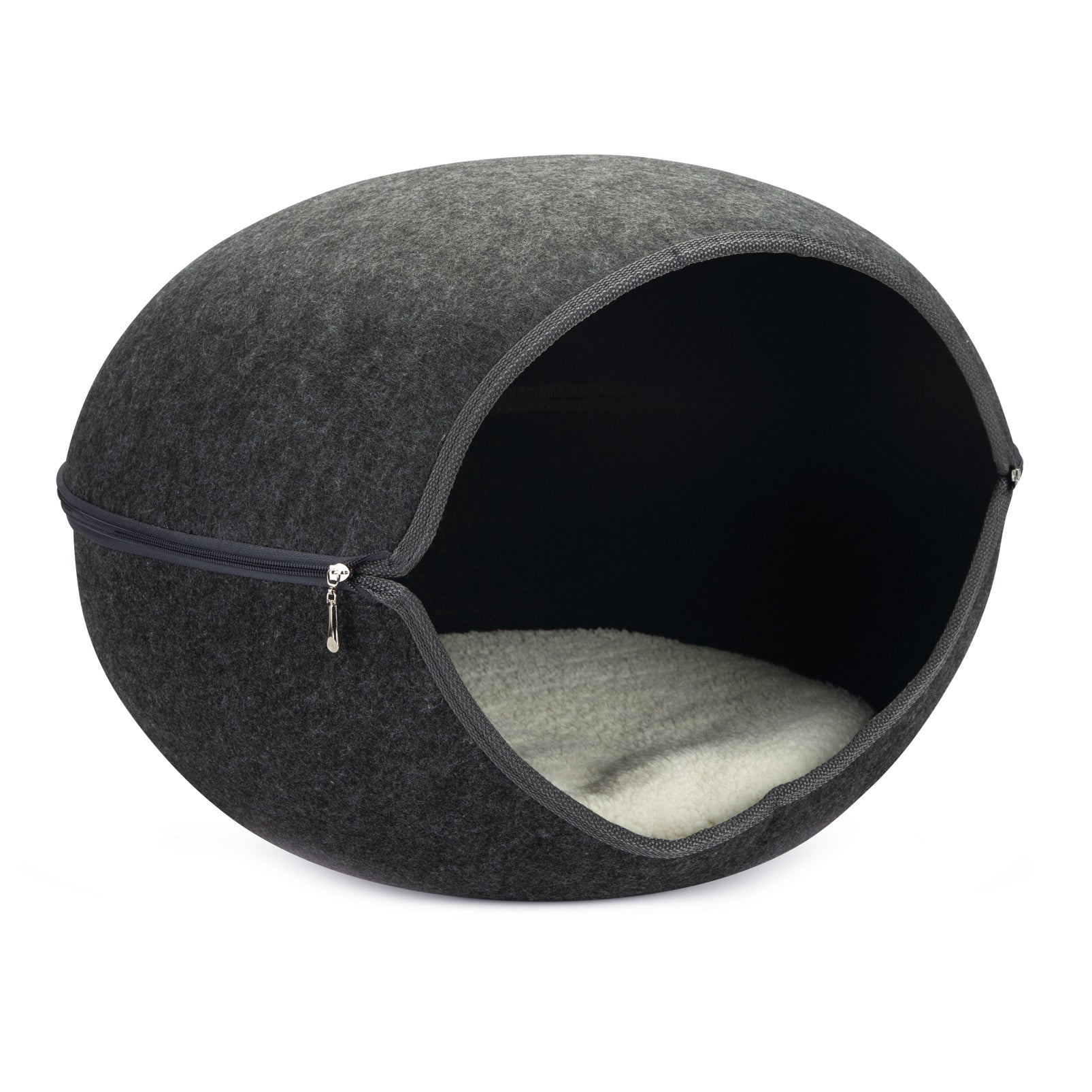 Extra comfort De katteniglo is niet alleen een leuke toevoeging aan je interieur, maar is ook een comfortabele plek voor je kat om zich terug te trekken dankzij het zachte kussentje. Met de rits haal je eenvoudig de bovenkant eraf, waardoor je het kussentje er gemakkelijk uit kunt halen.