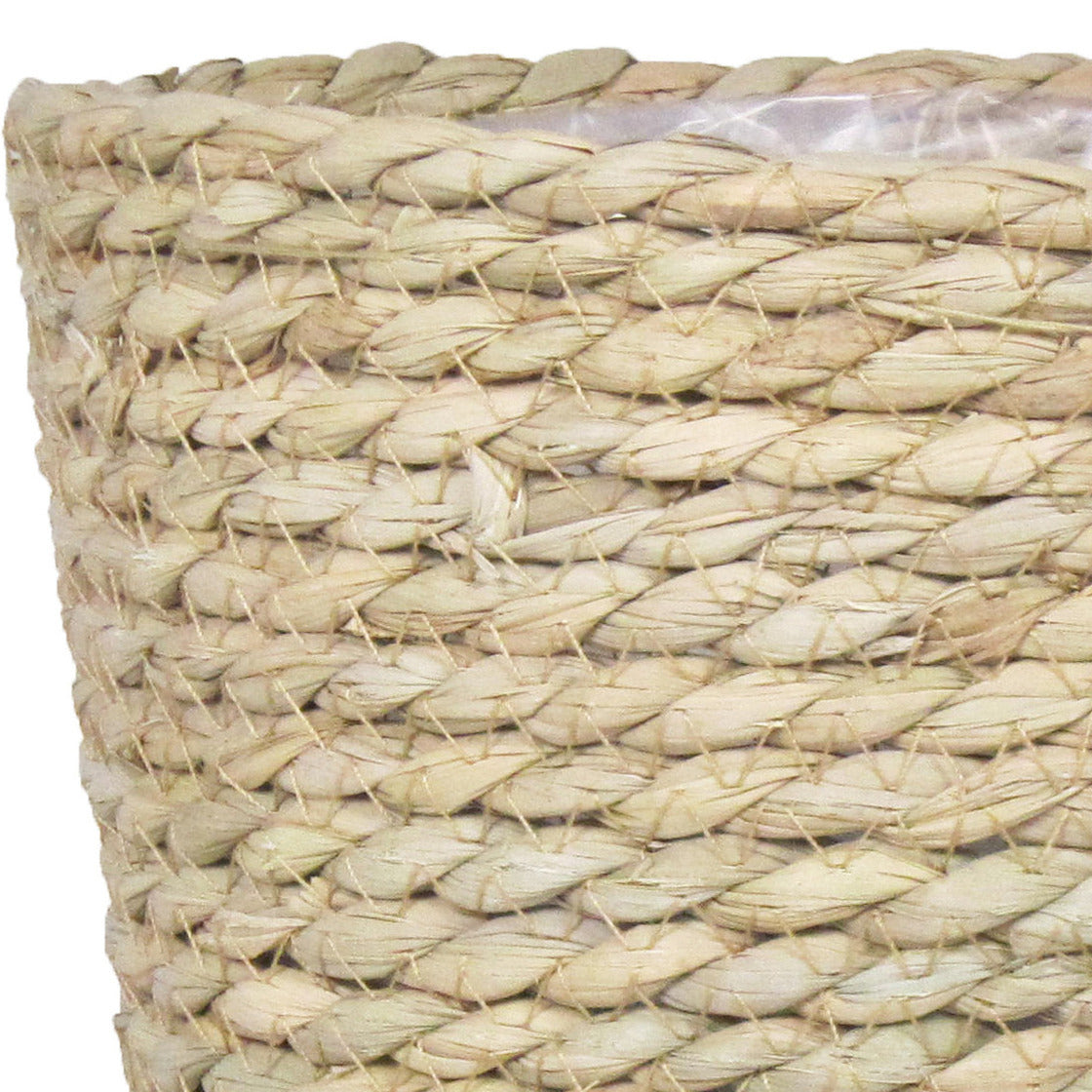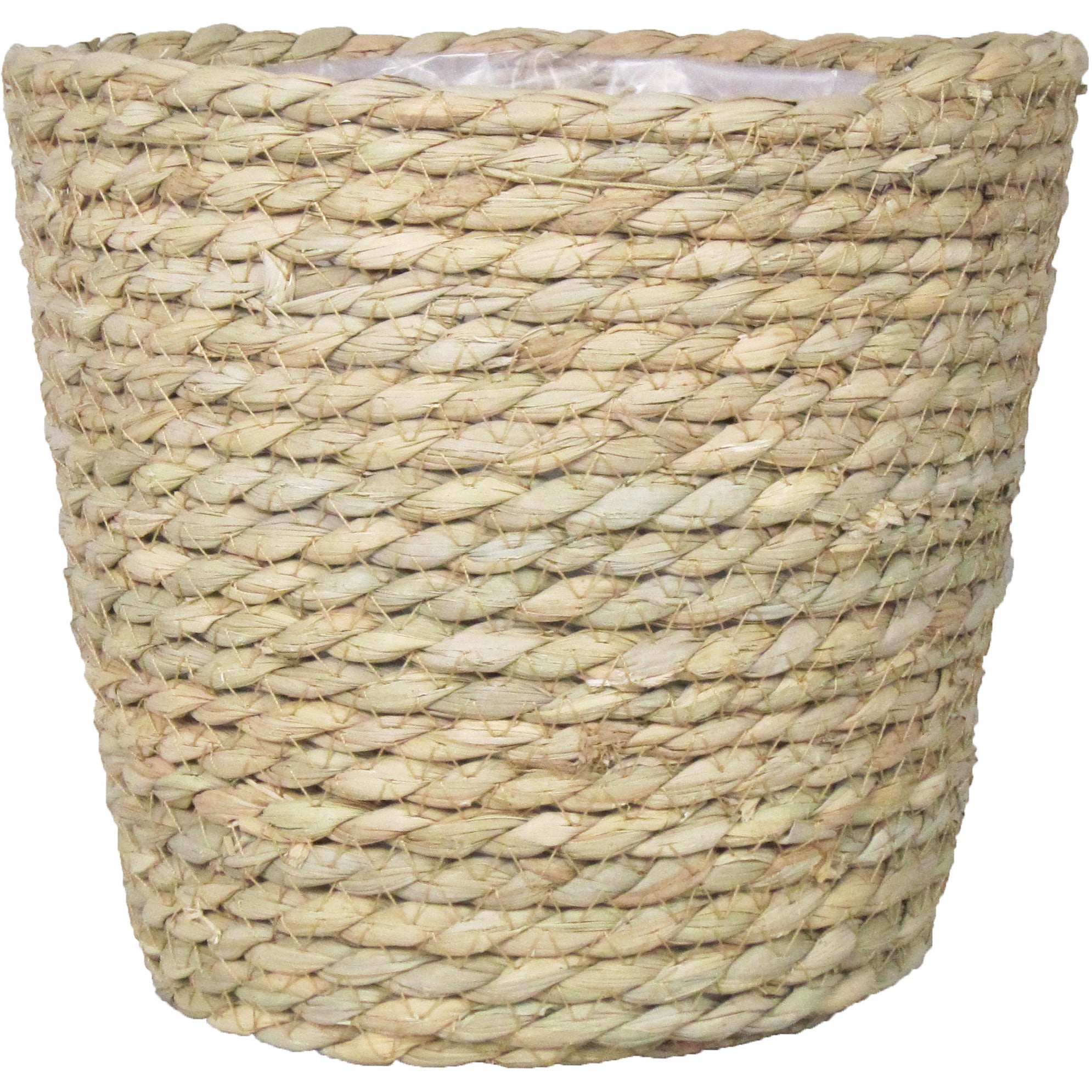 Naturel rotan mand van gedraaid touw iet 17,5 cm. Een mooie rotan mand met plastic aan de binnenkant zodat het water er niet door gaat. De ronde mand heeft geen gaatjes aan de onderkant.