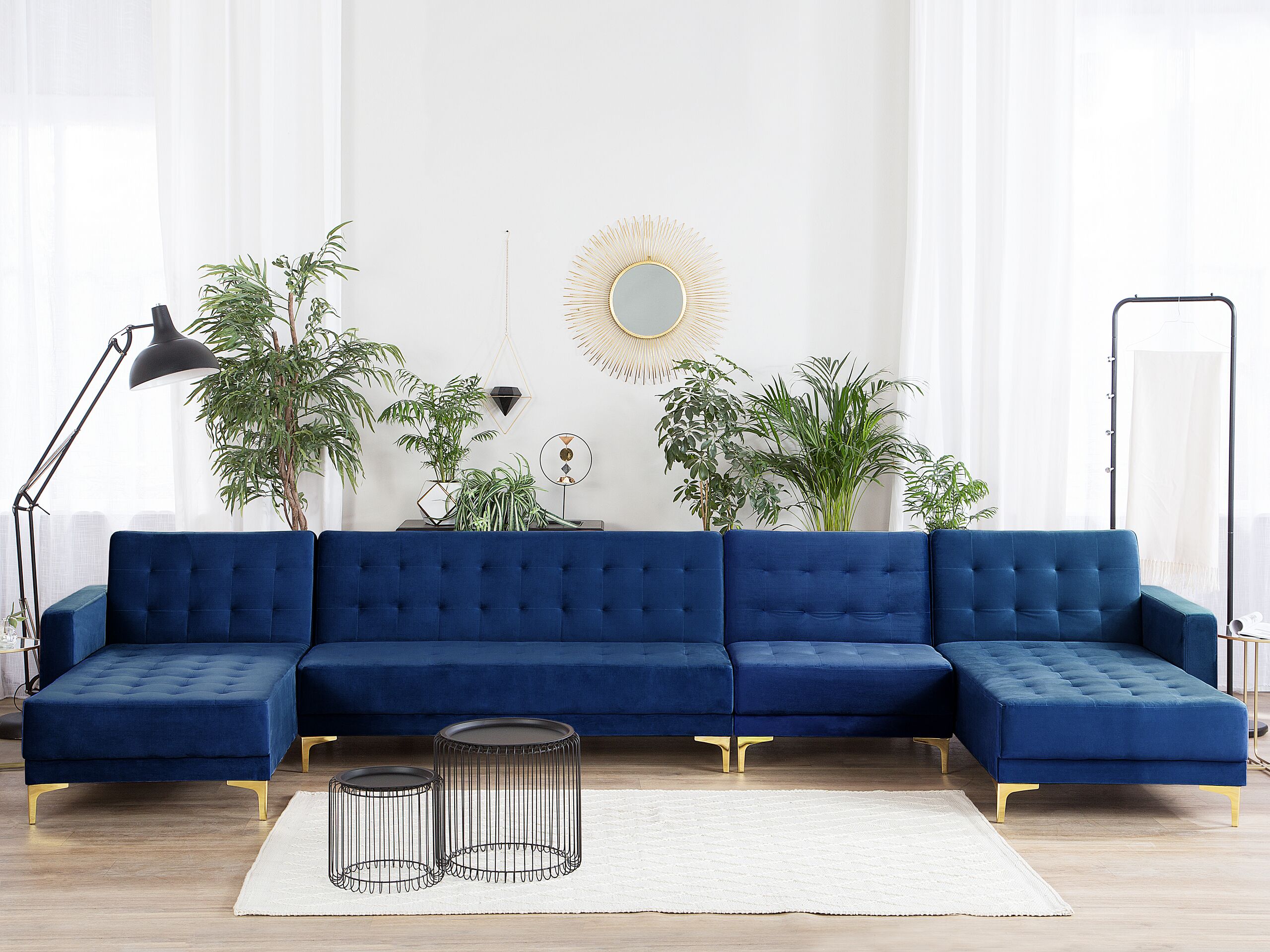 Beliani-ABERDEEN-Bank U-vormig-Marineblauw-6 persoons-Fluweel