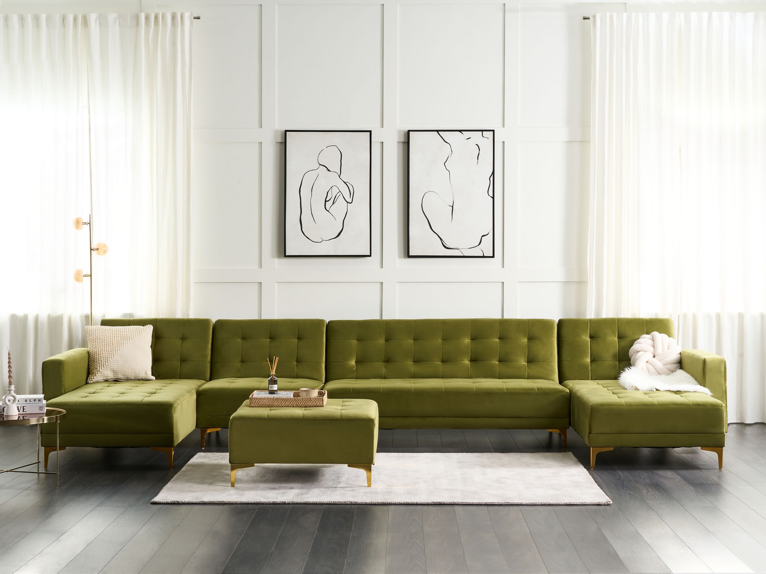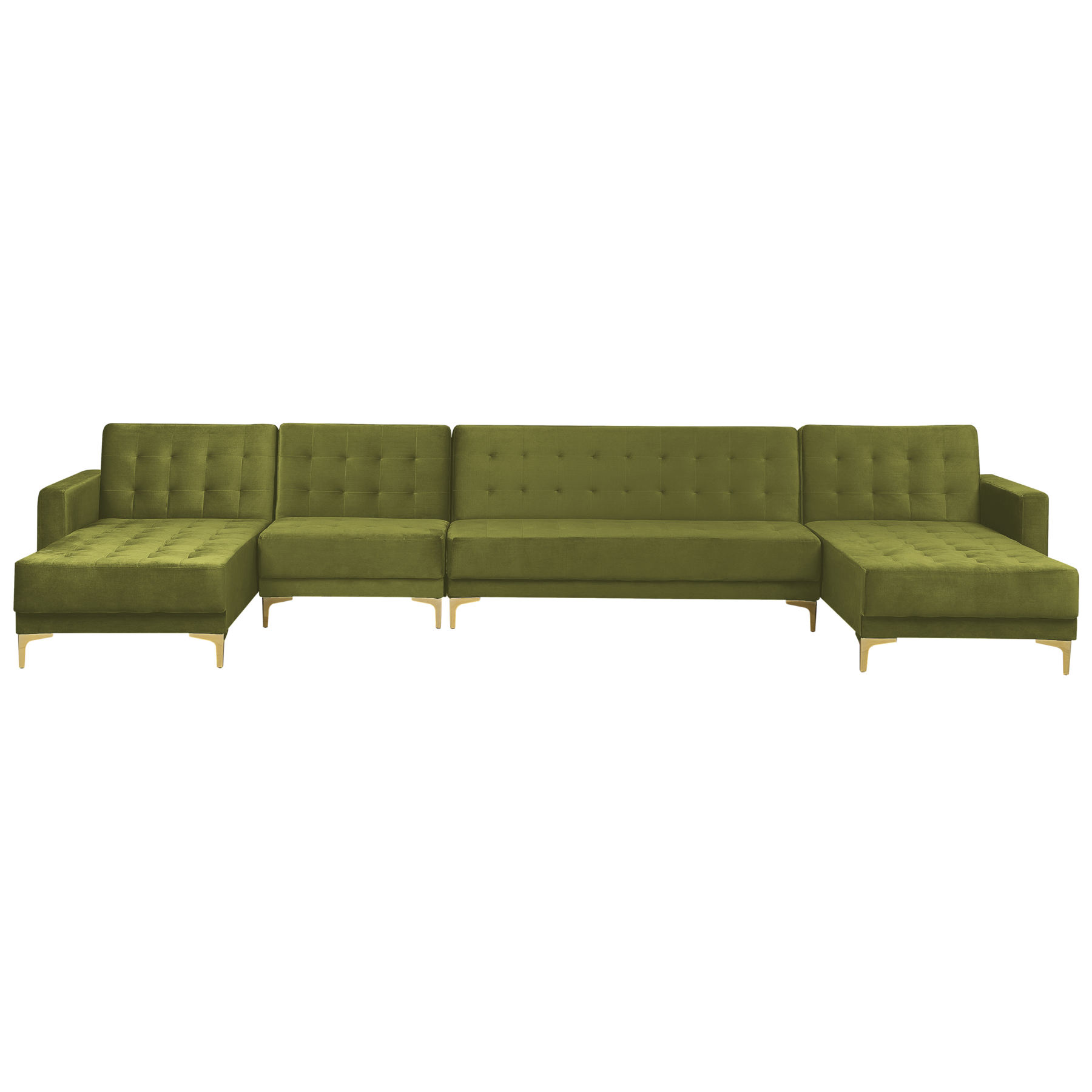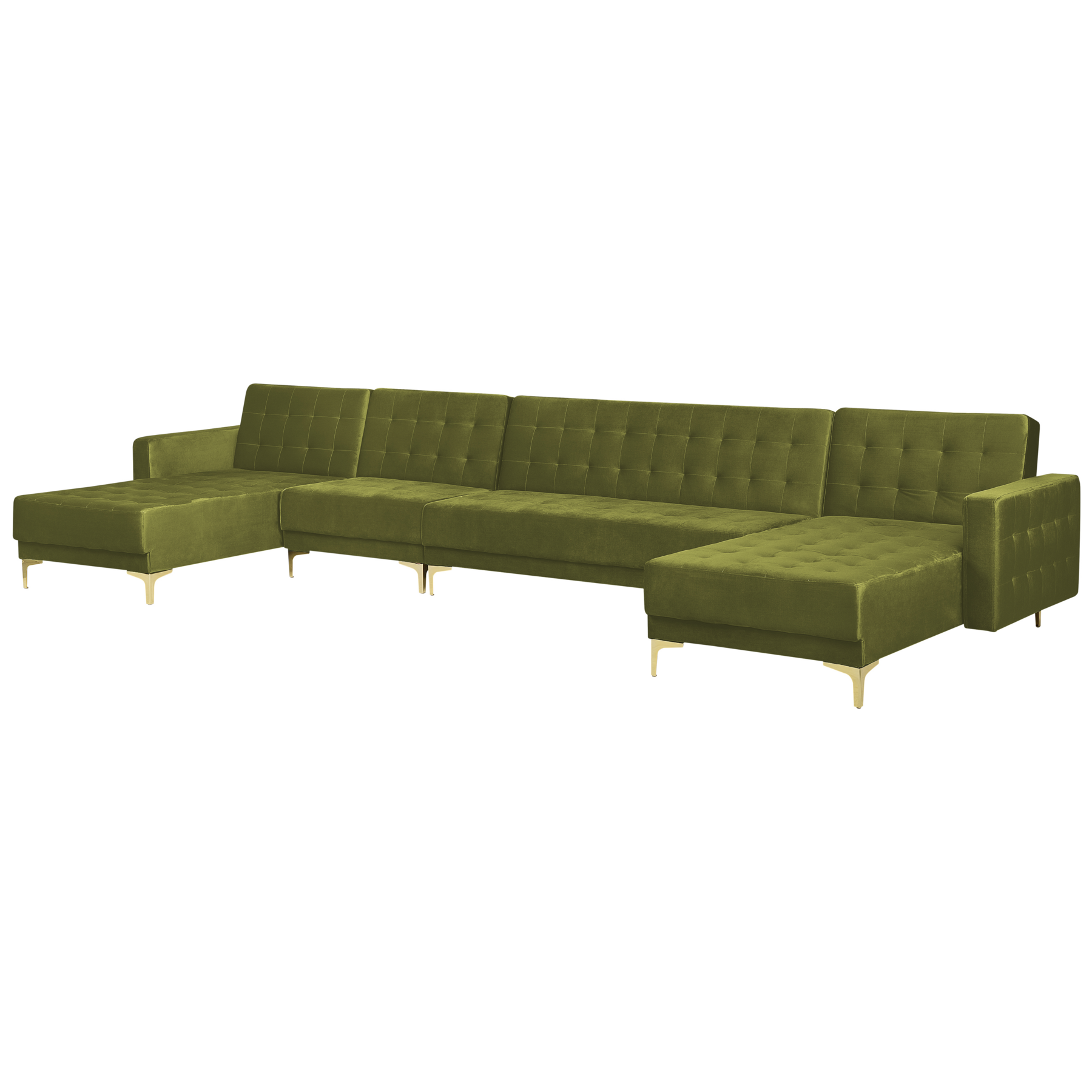Beliani - ABERDEEN - Bank U-vormig - Olijfgroen - 6 persoons - Fluweel