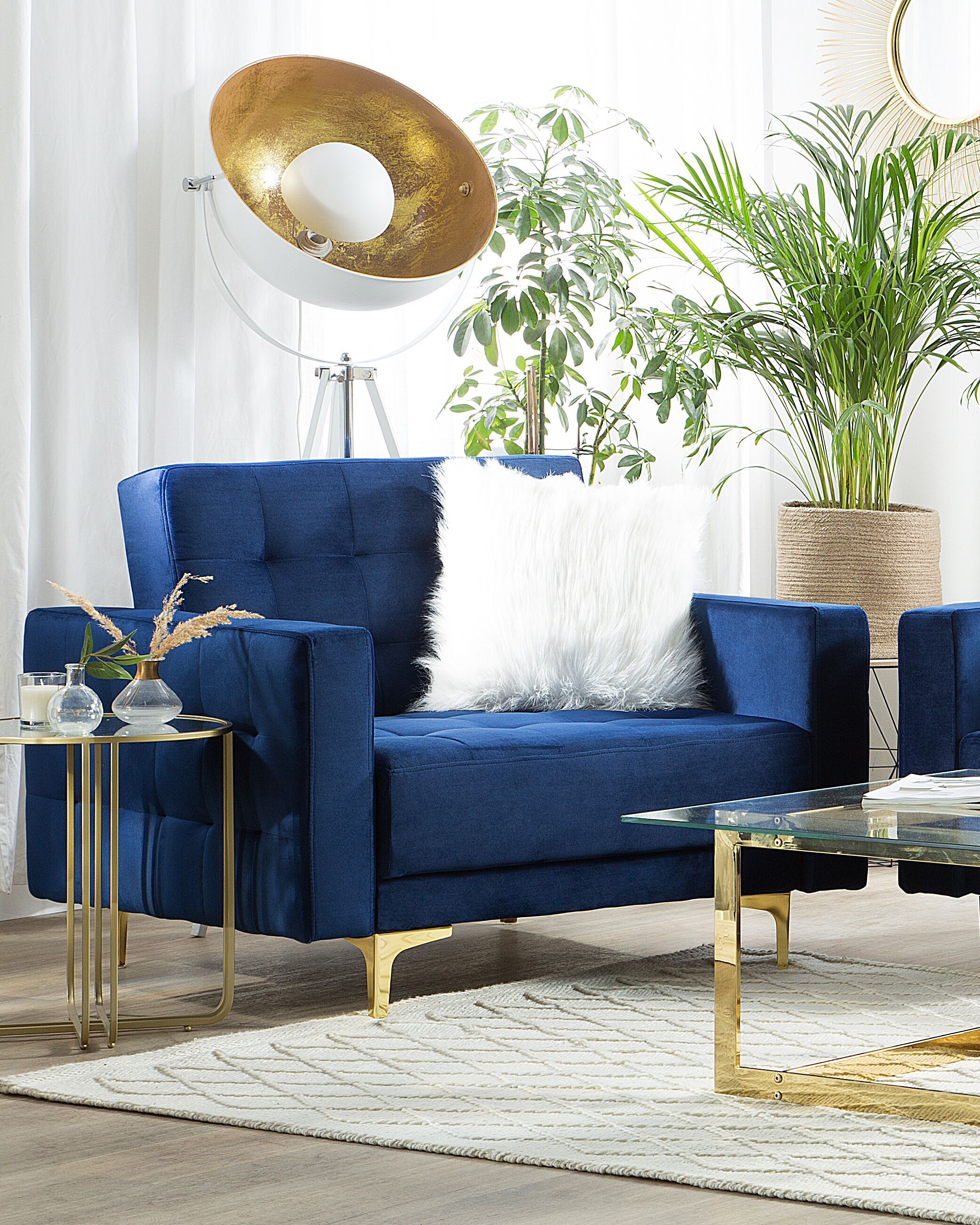 Beliani - ABERDEEN - Chesterfield fauteuil - Marineblauw - Fluweel