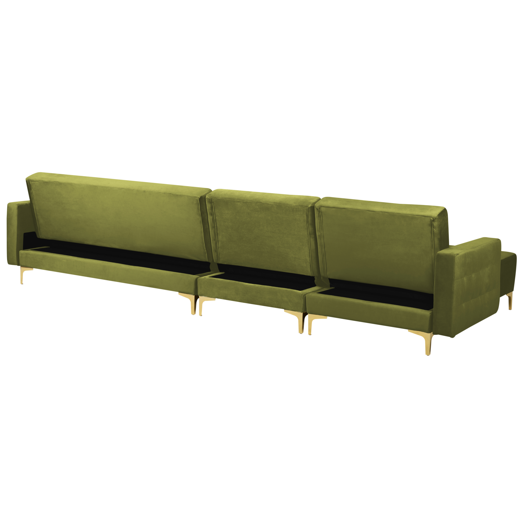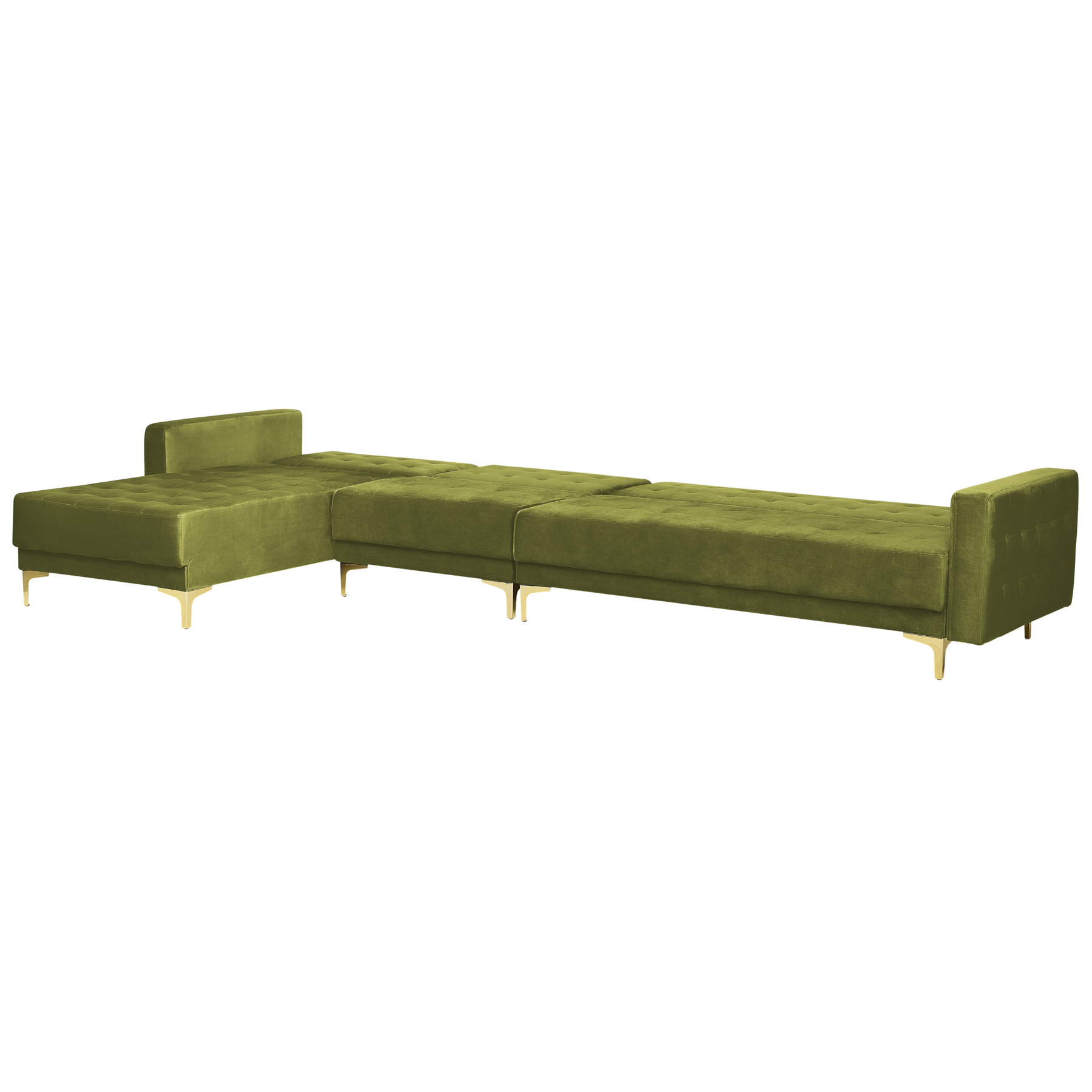 Beliani-ABERDEEN-Hoekbank modulair-Olijfgroen-Rechterzijde-Fluweel