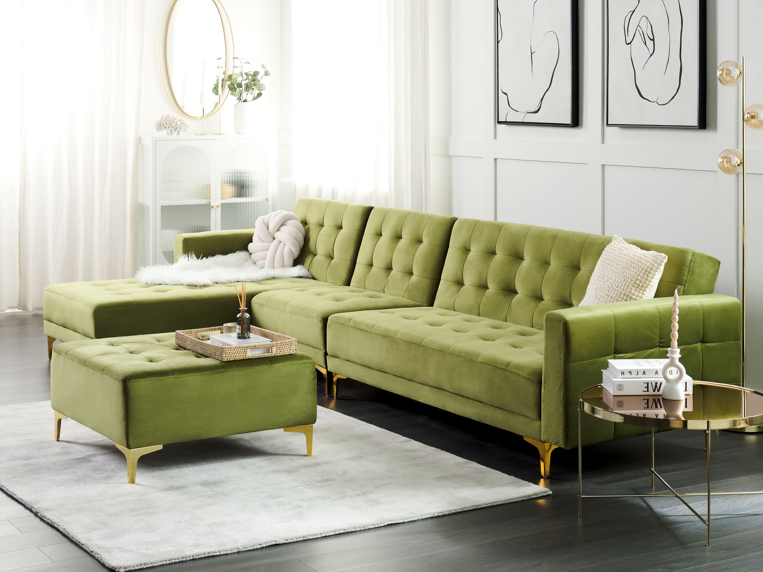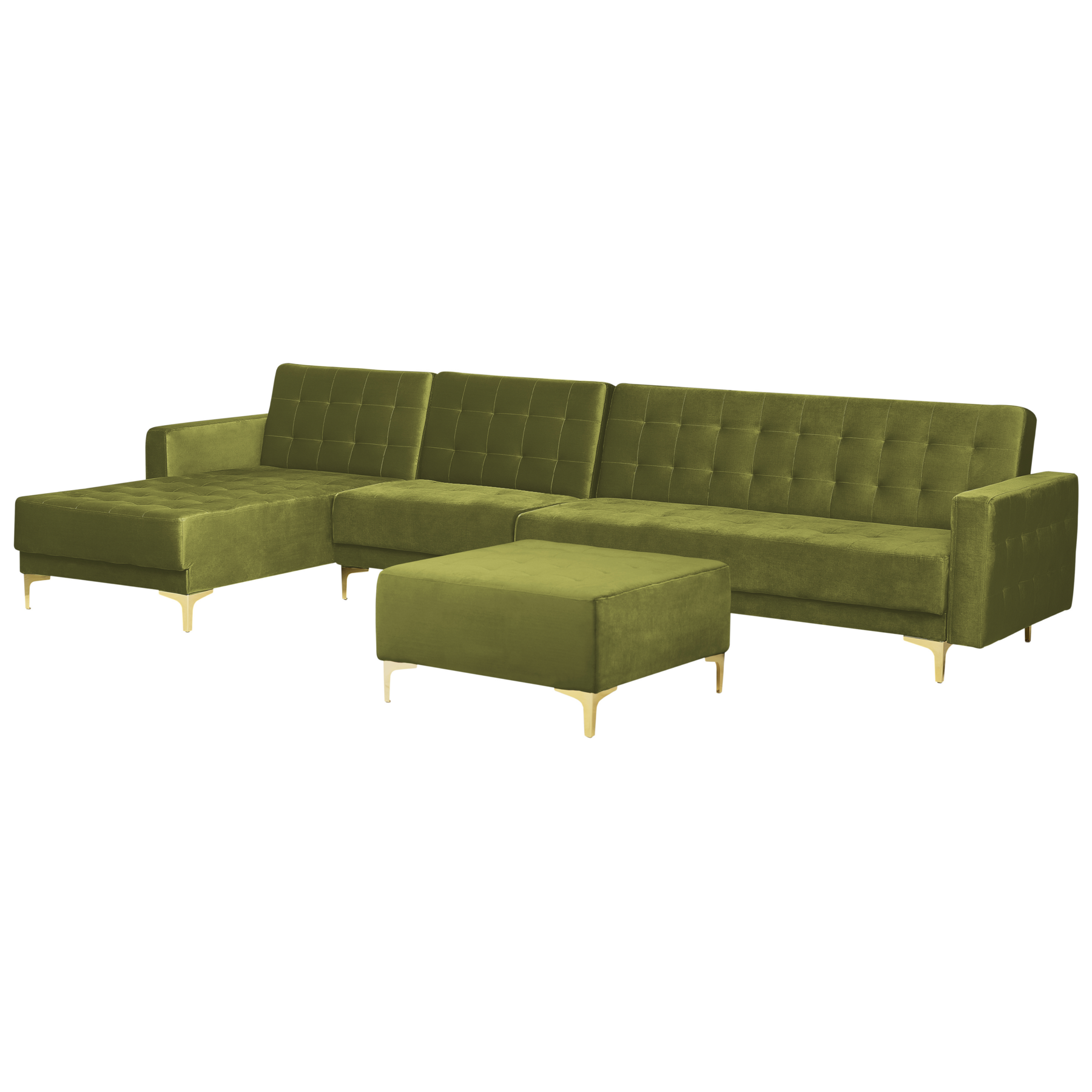 Beliani-ABERDEEN-Hoekbank modulair ottomaan-Olijfgroen-Rechts-Fluweel