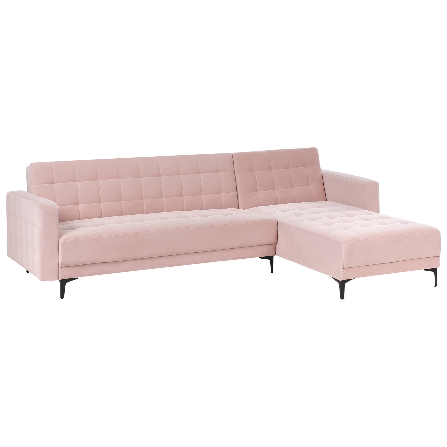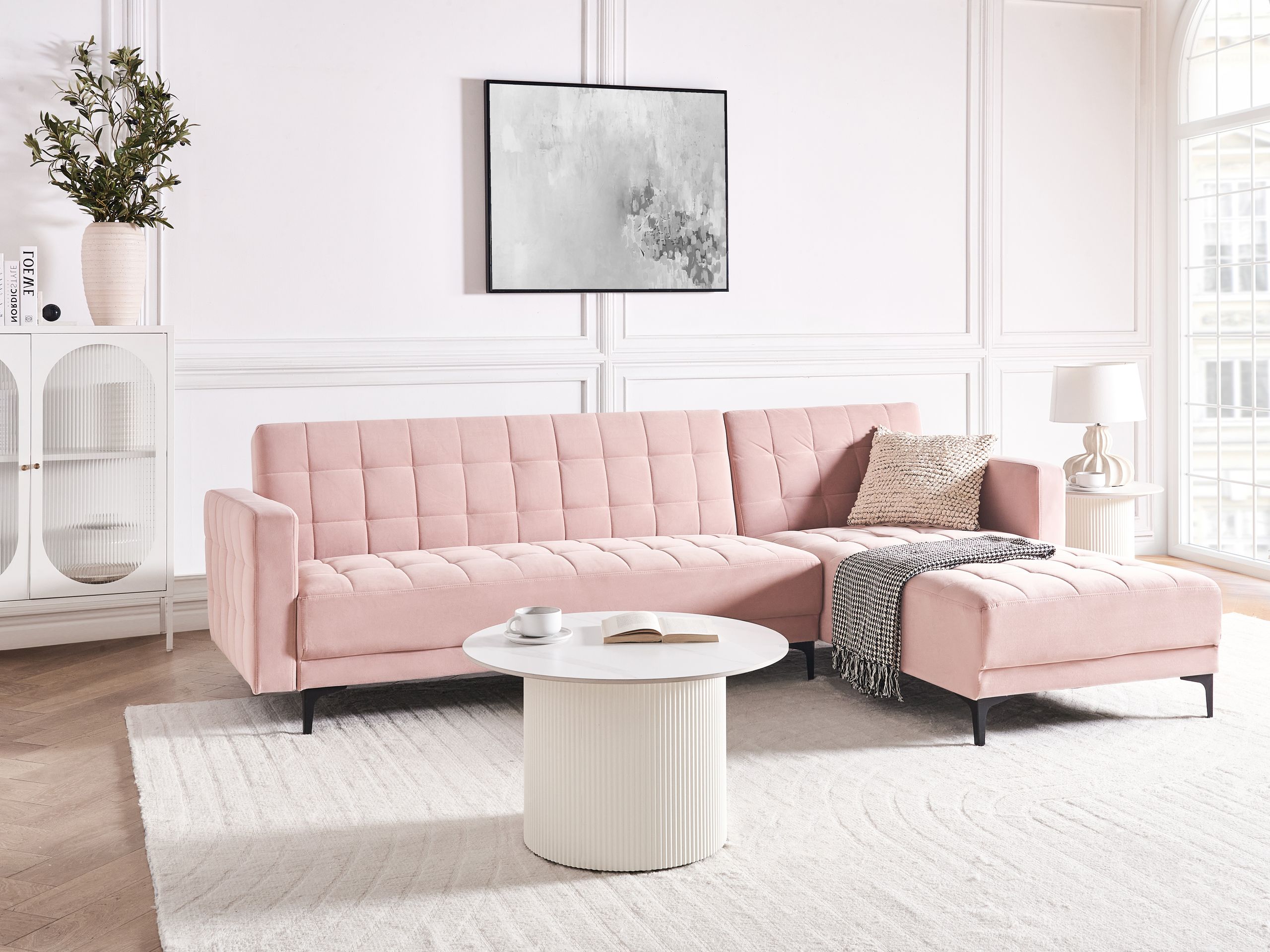 Beliani - ABERDEEN - Hoekbank - Pastelroze - Linkszijdig - Fluweel