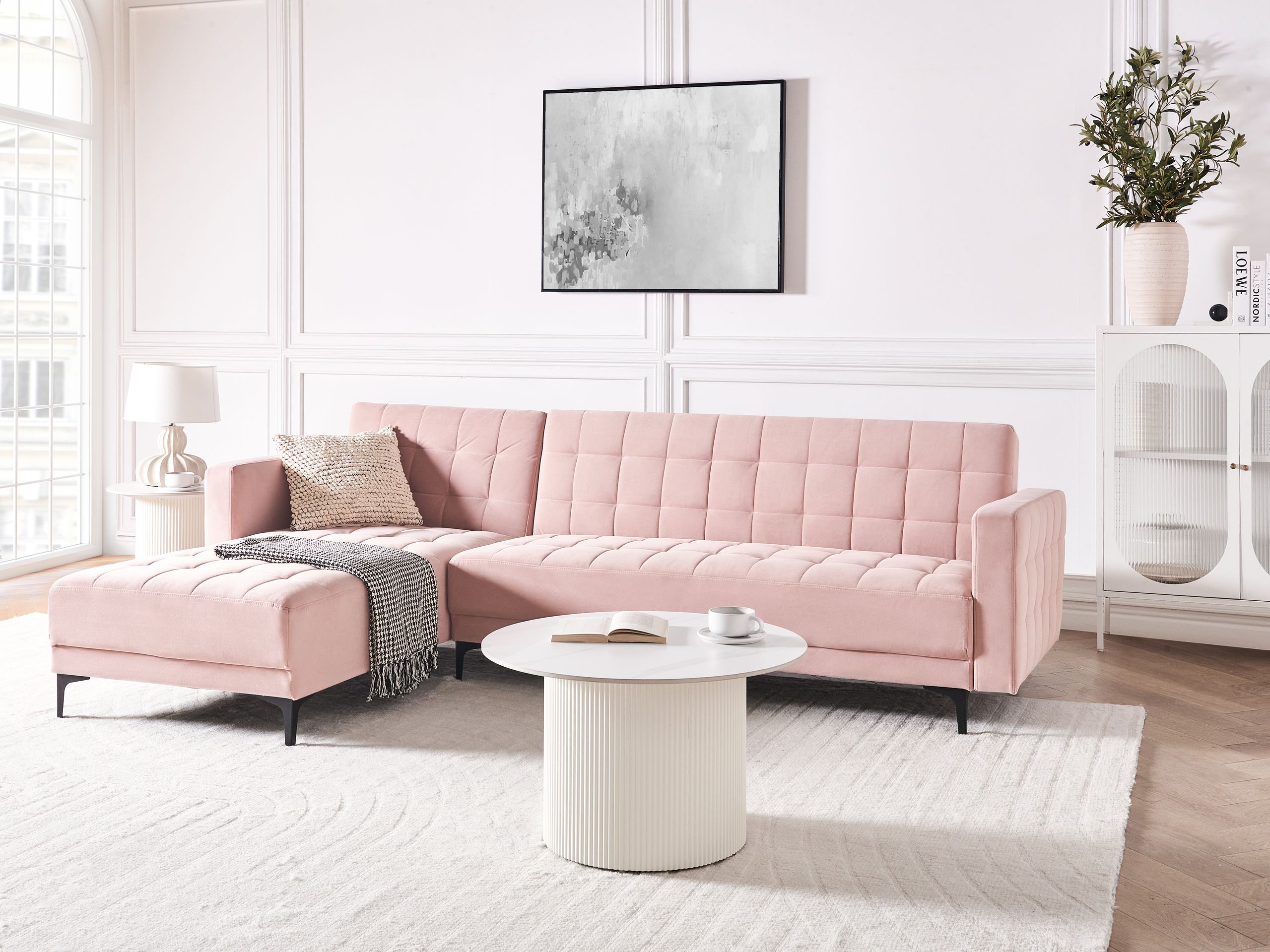 Beliani - ABERDEEN - Hoekbank - Pastelroze - Rechterzijde - Fluweel