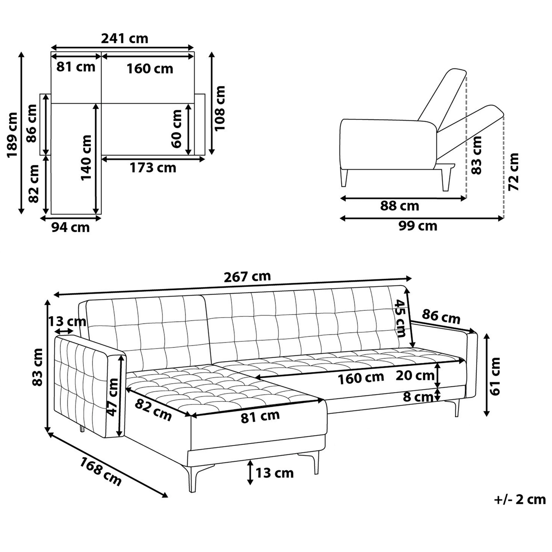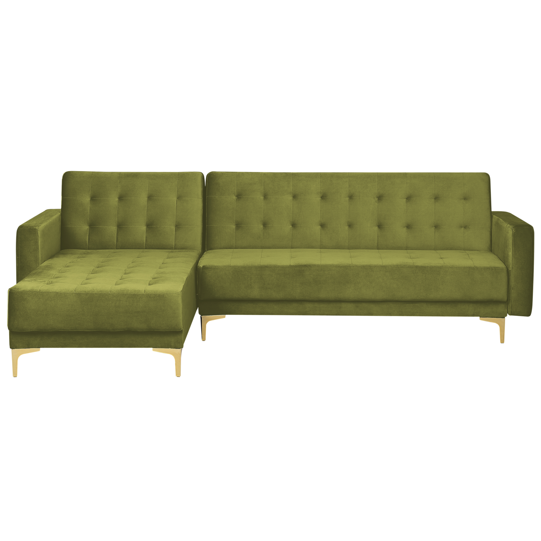 Beliani-ABERDEEN-Hoekslaapbank-Olijfgroen-Rechterzijde-Fluweel