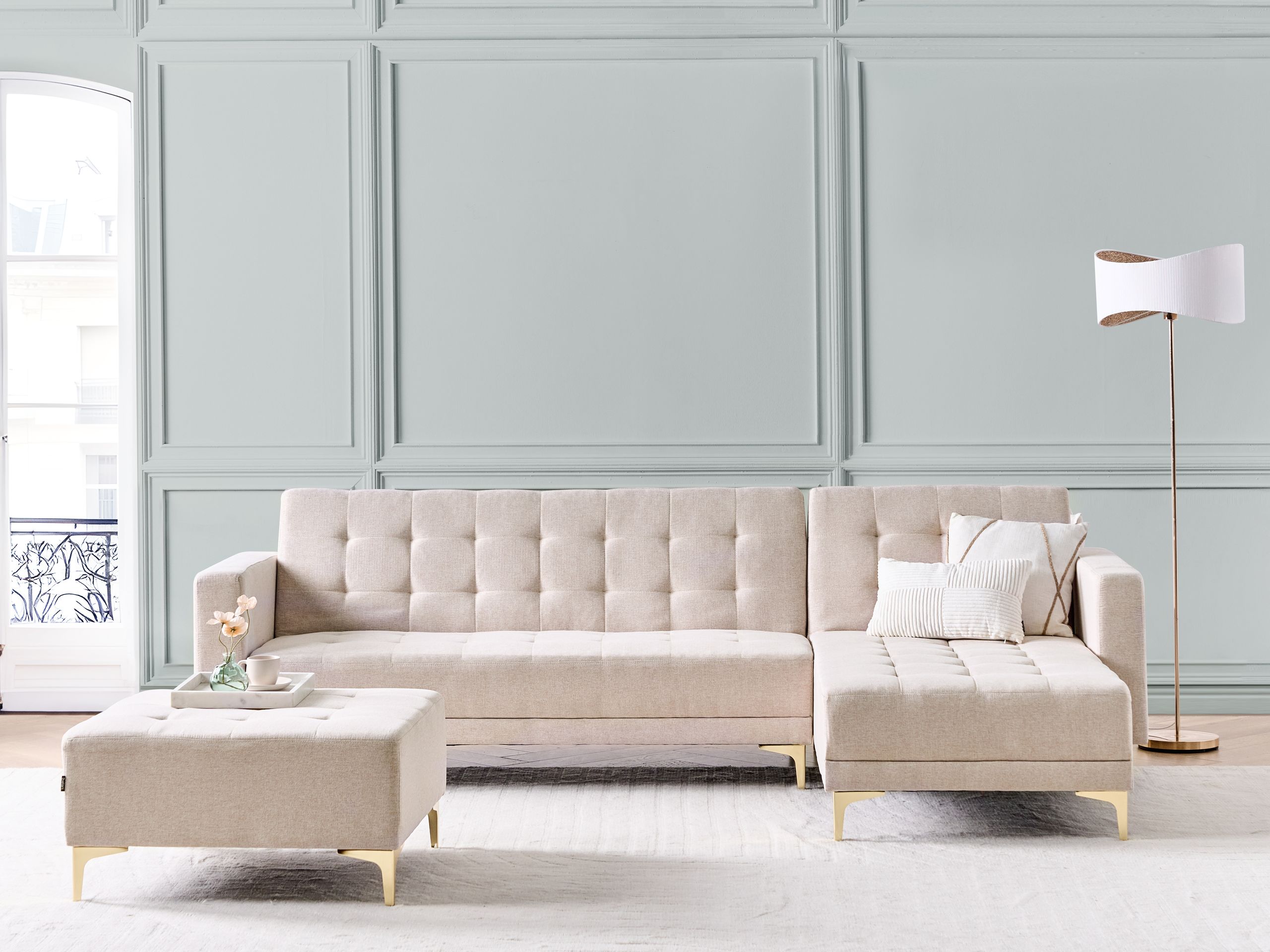 Beliani-ABERDEEN-Hoekslaapbank ottomaan-Beige -Linkszijdig-Polyester