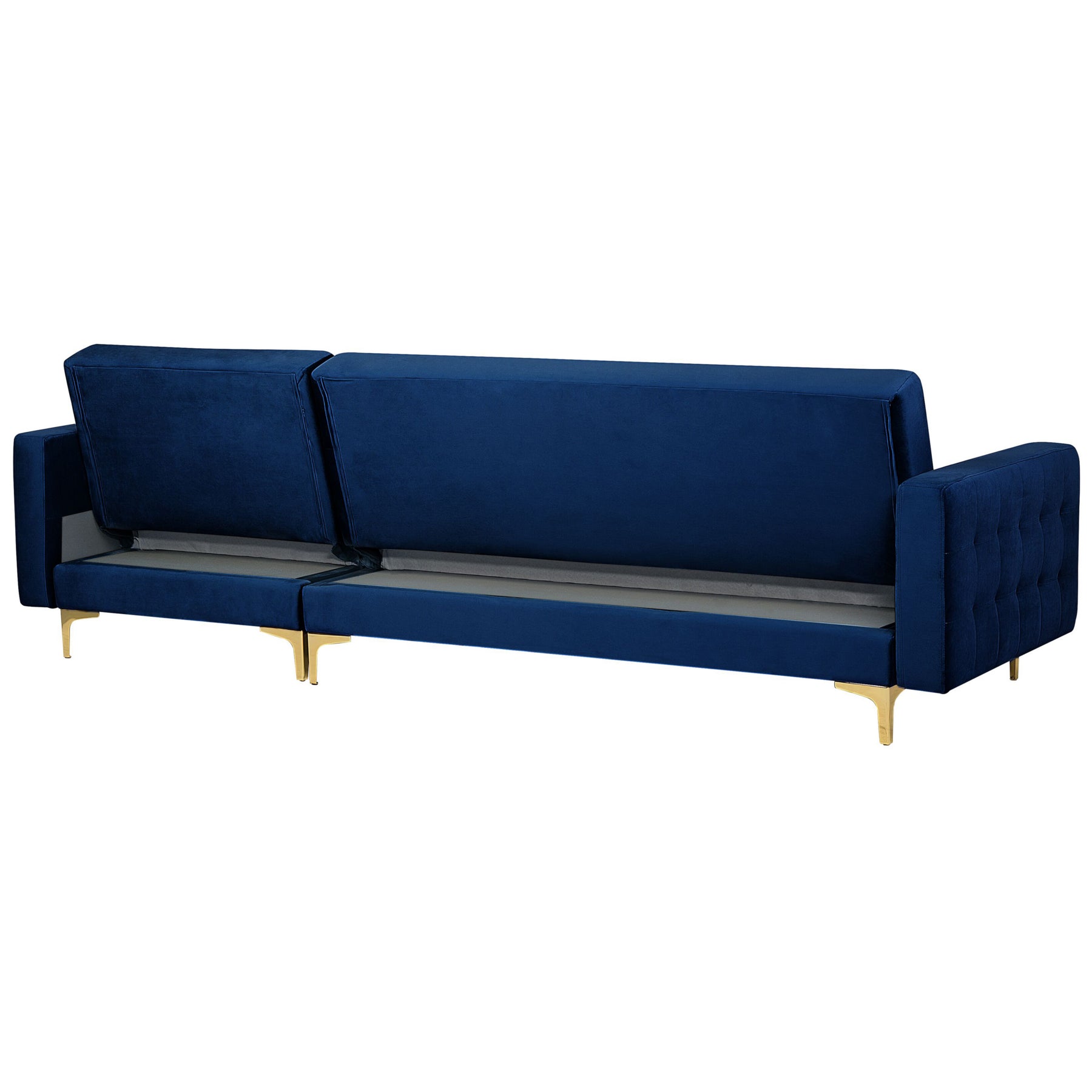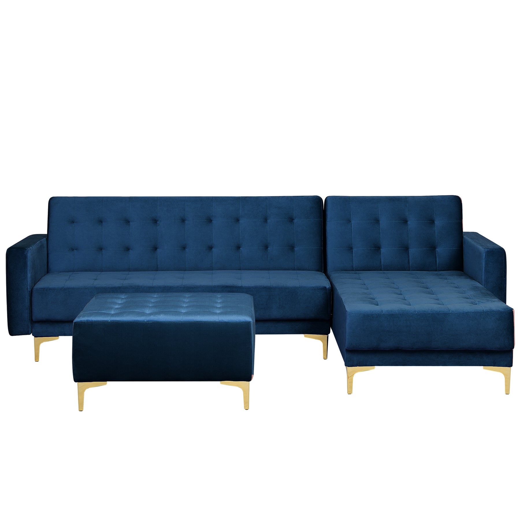 Beliani-ABERDEEN-Hoekslaapbank ottomaan-Marineblauw-Links-Fluweel
