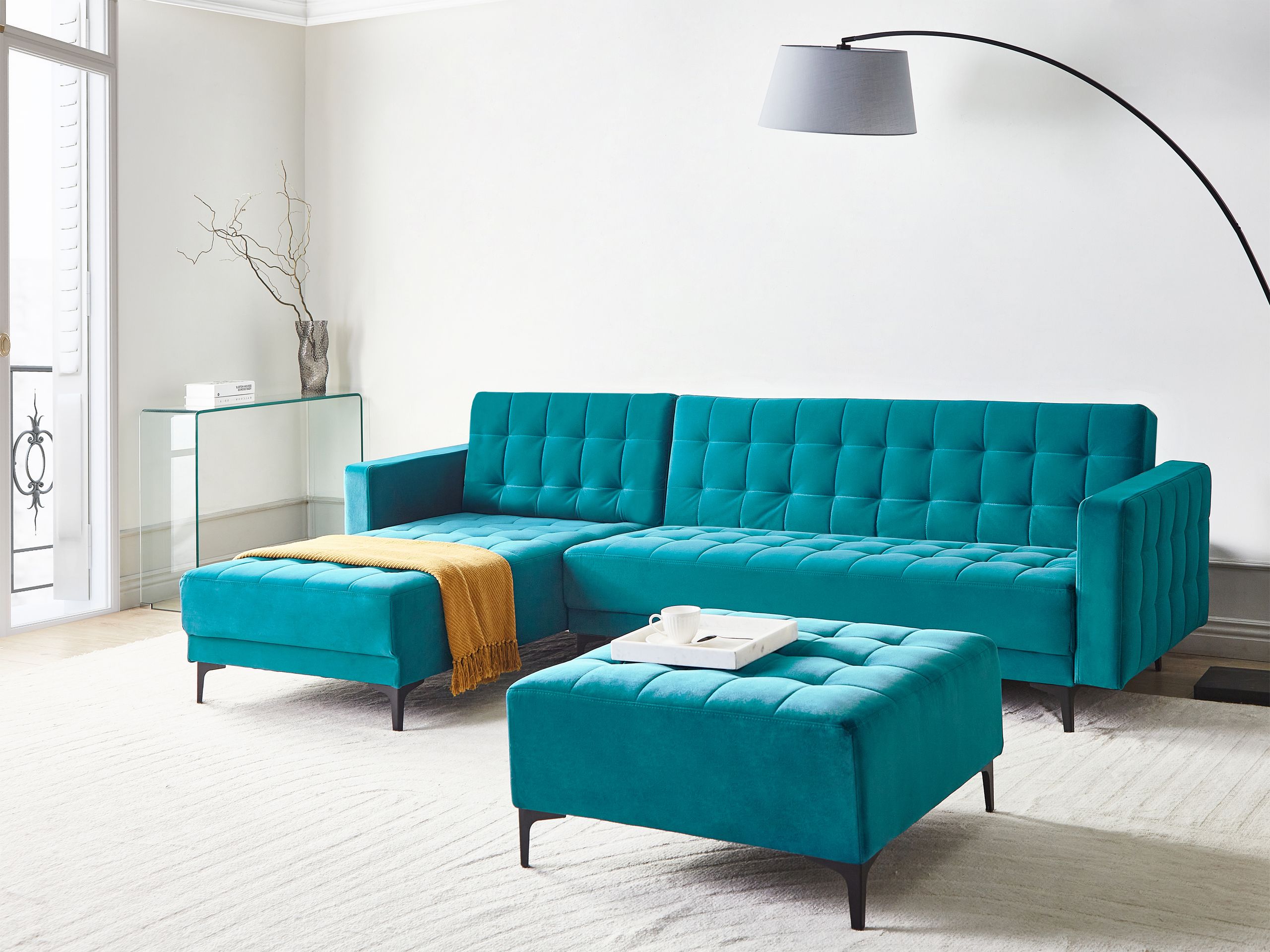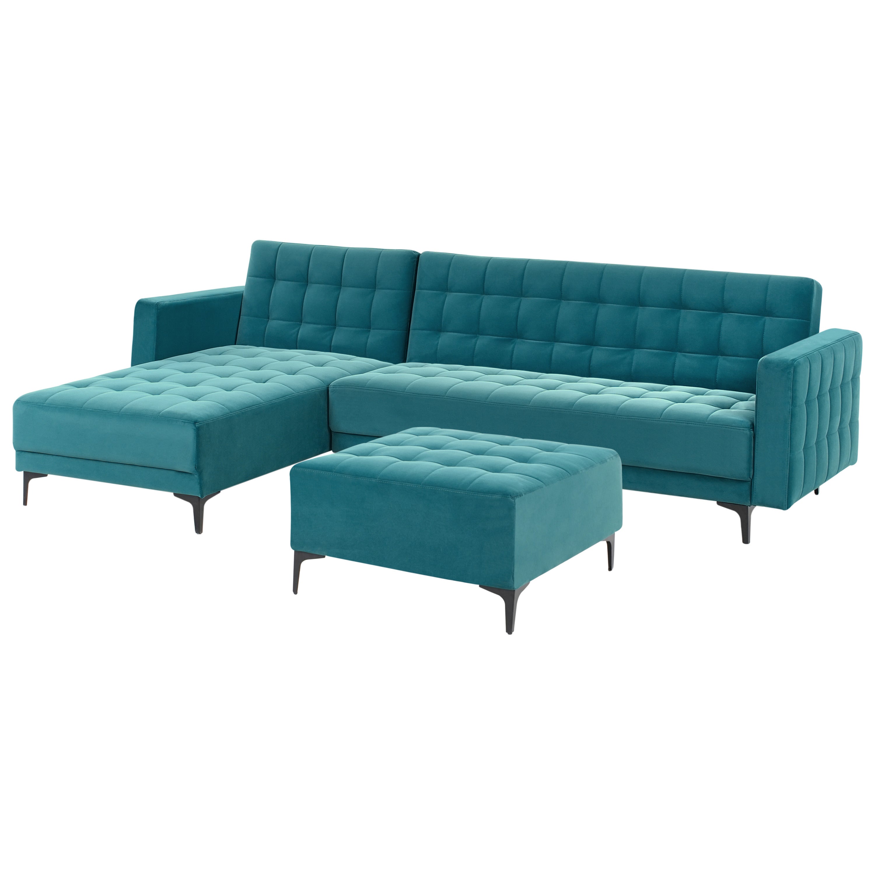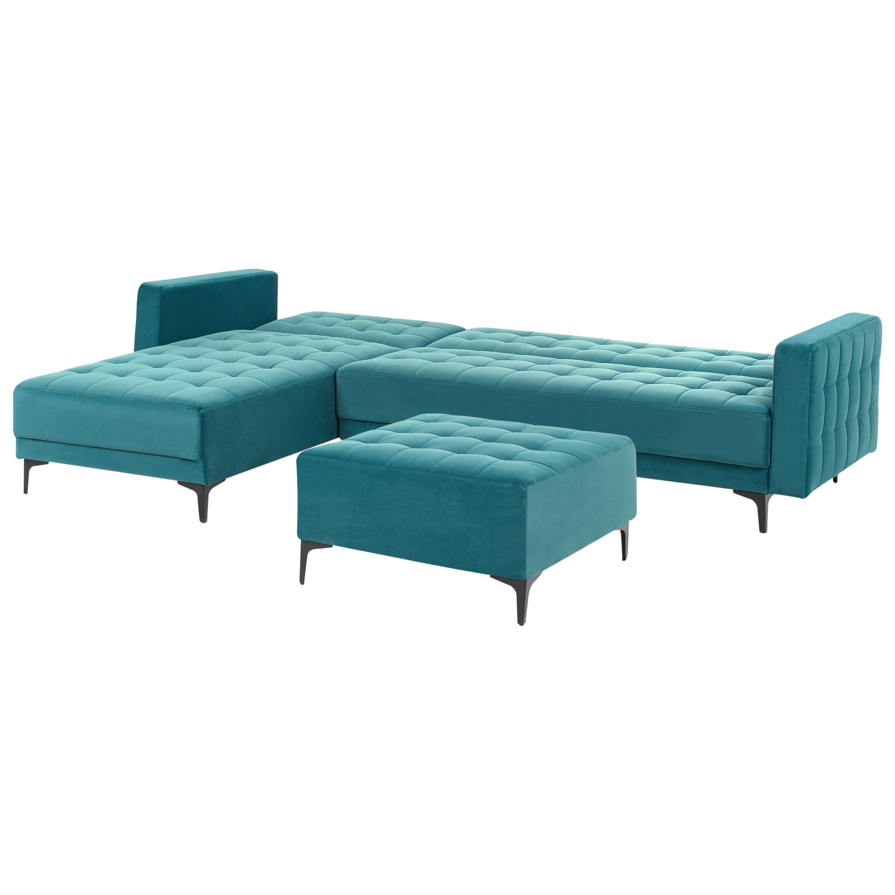 Beliani-ABERDEEN-Slaapbank met ottomaan-Zeeblauw-Rechts-Fluweel