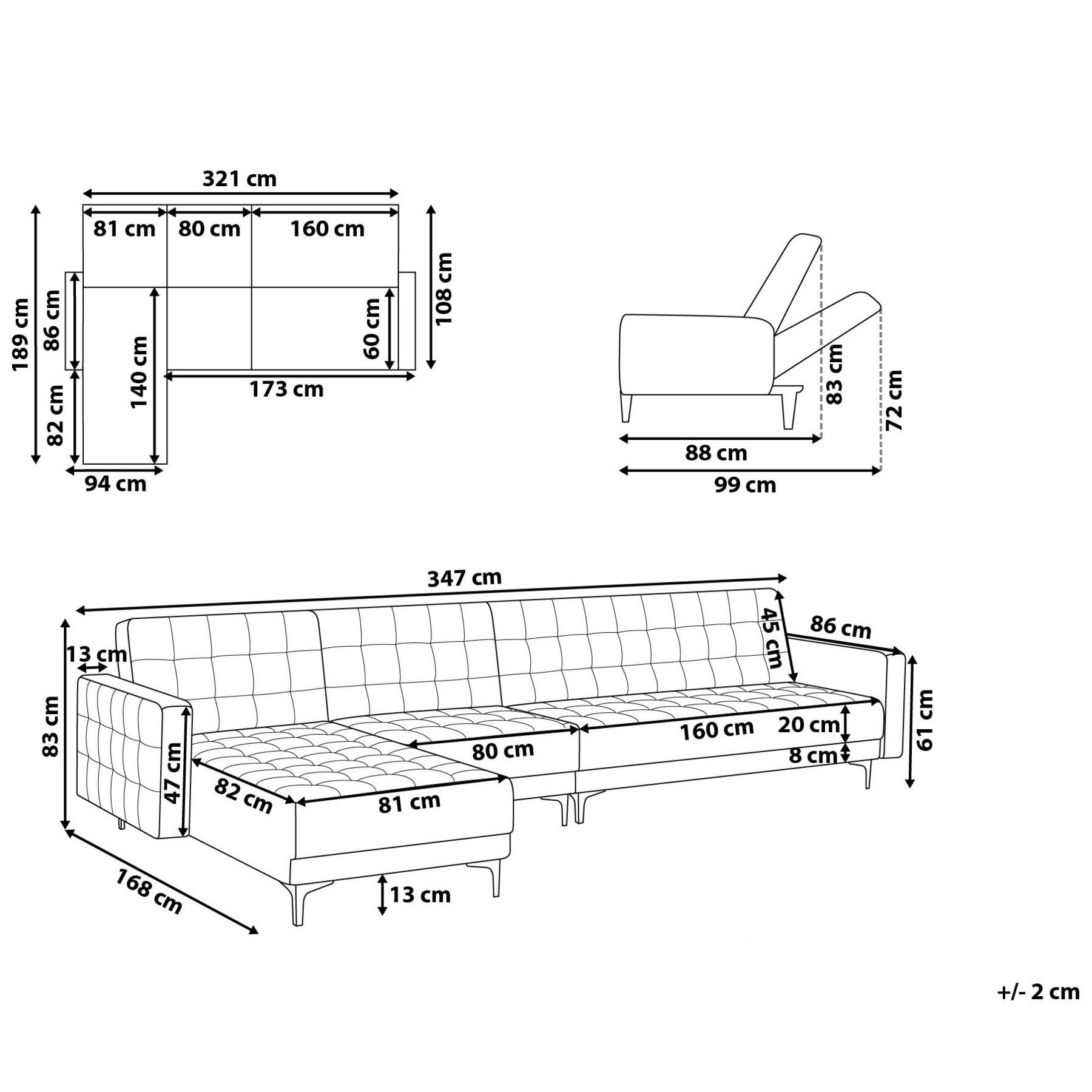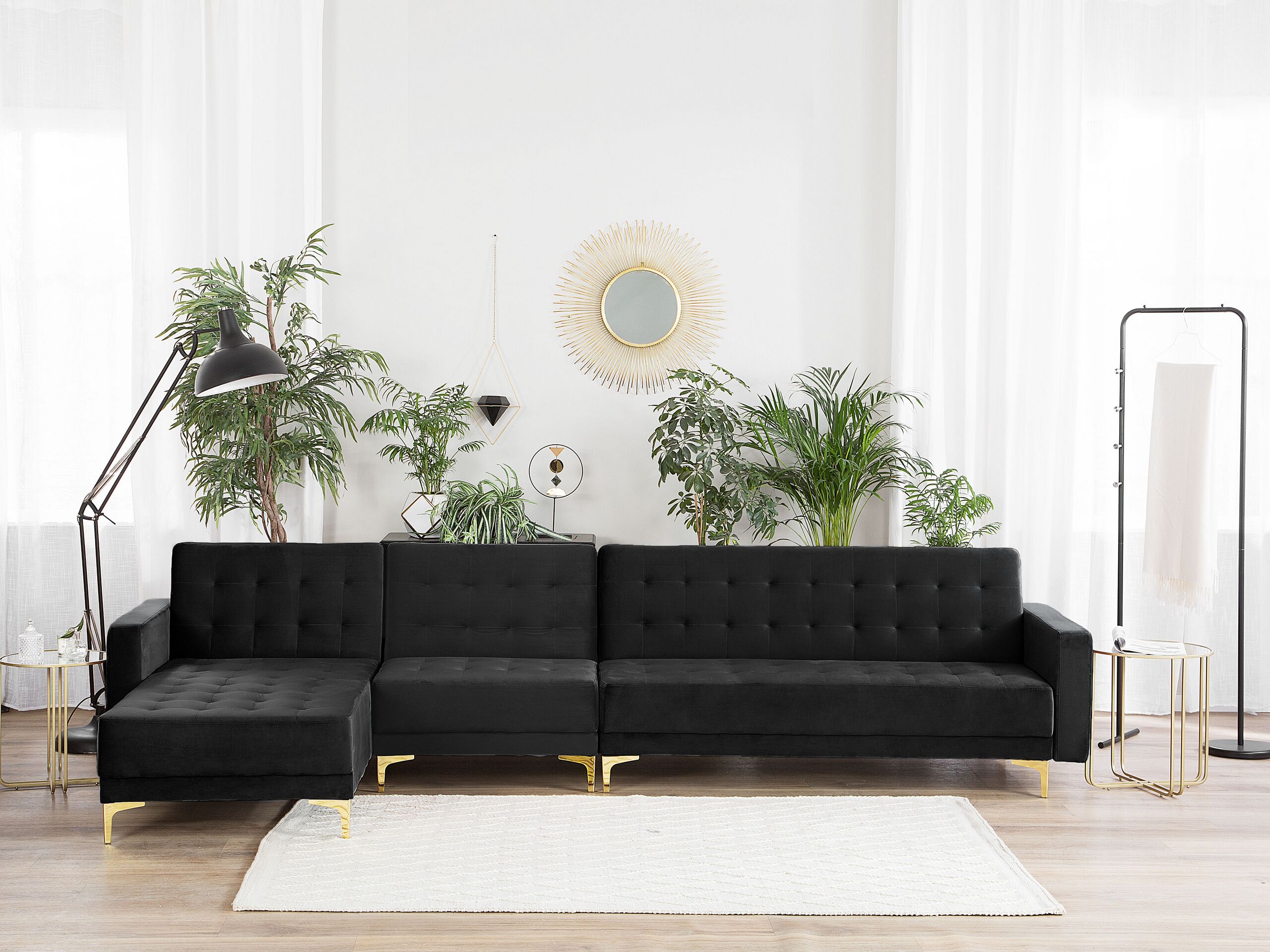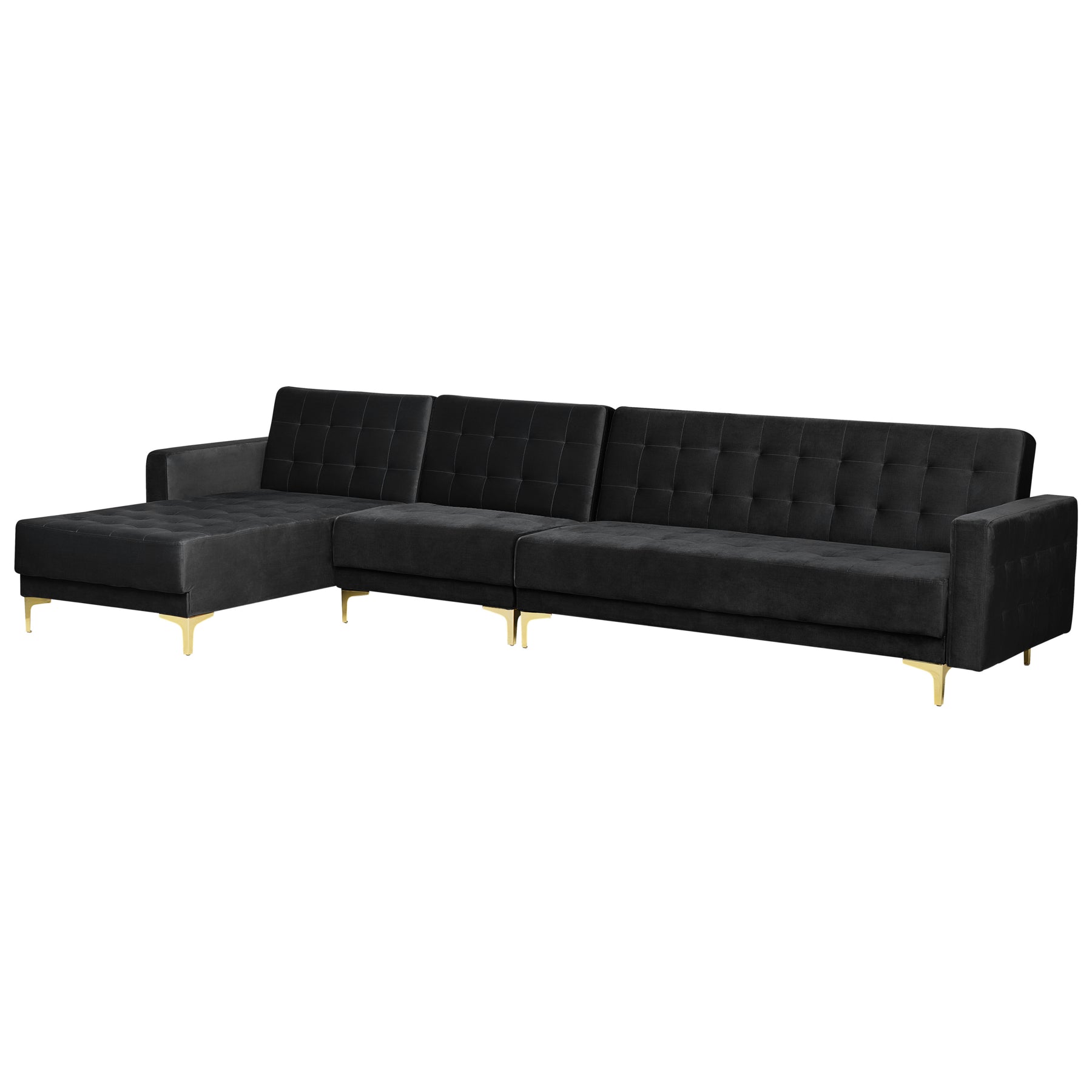 Beliani - ABERDEEN - Slaapbank - Zwart - Rechterzijde - Fluweel