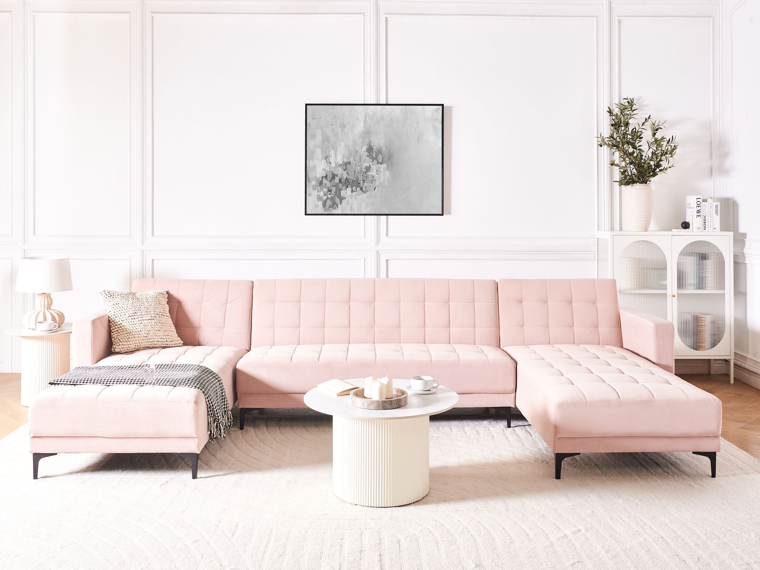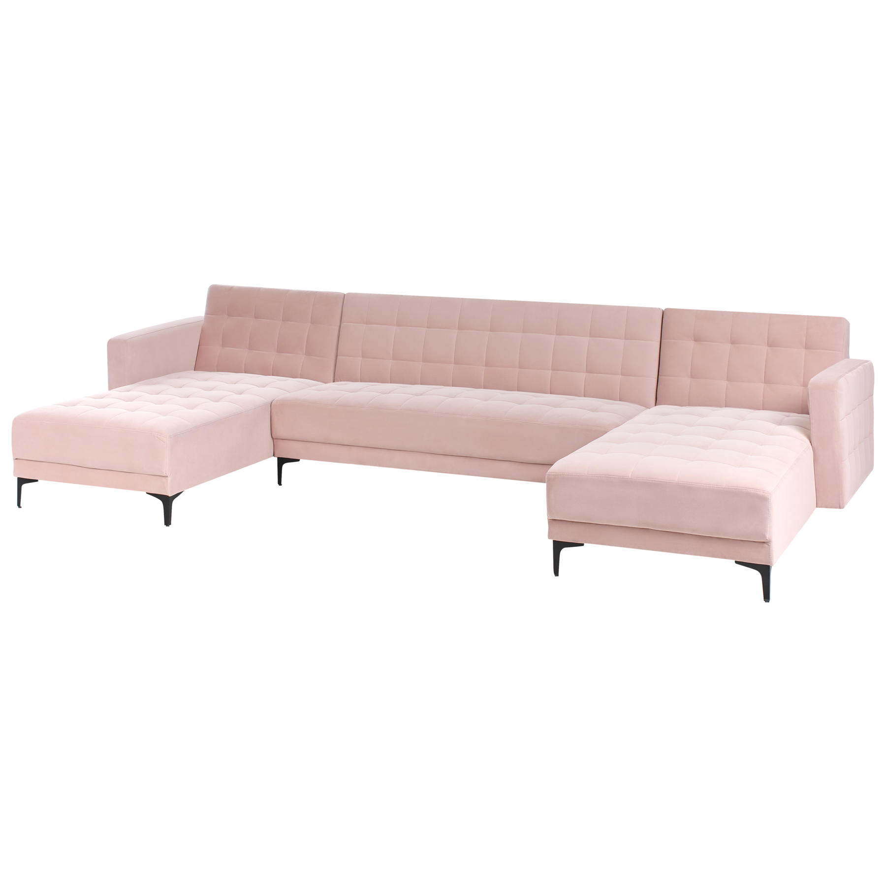 Beliani - ABERDEEN - U-vorm bank - Pastelroze - Fluweel