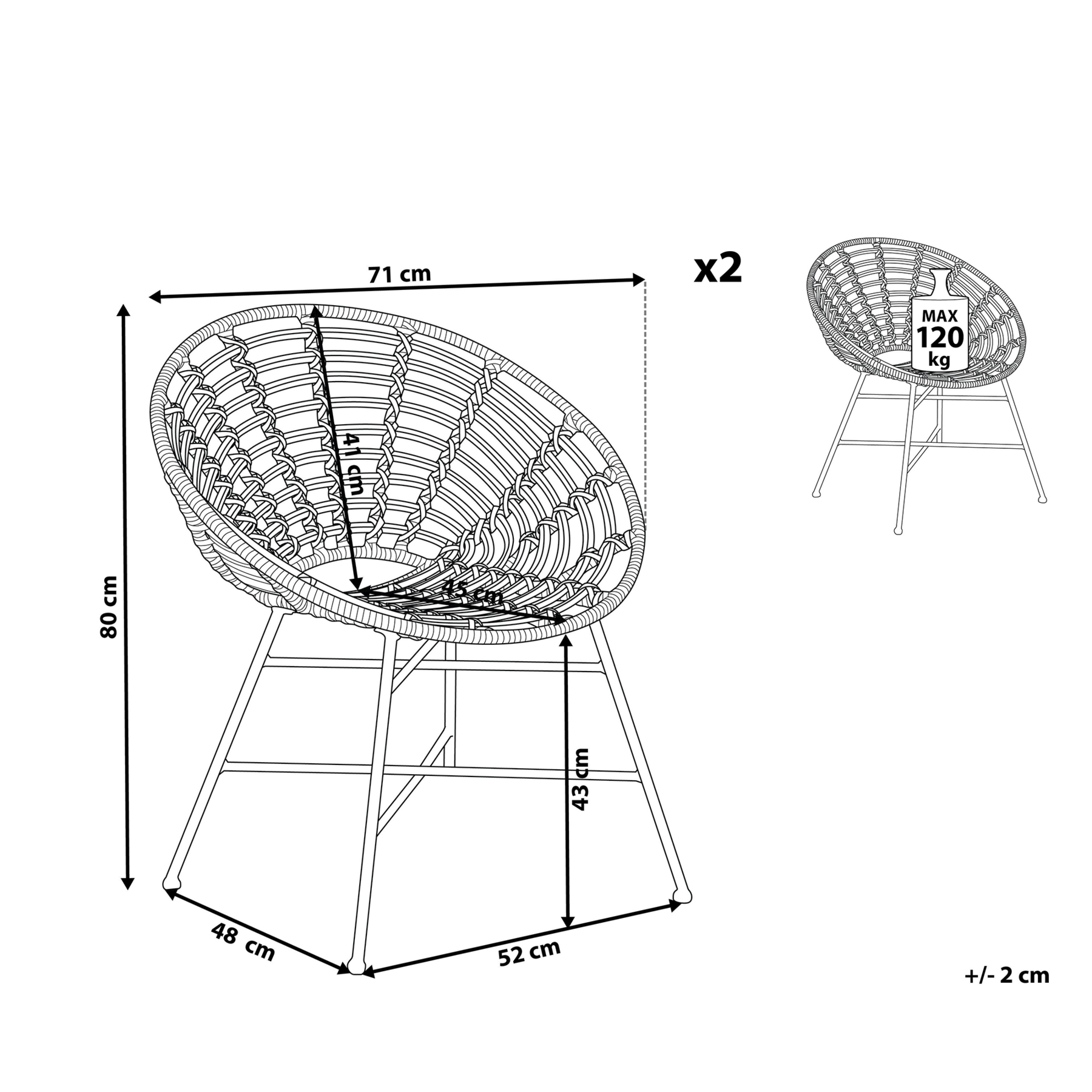 Beliani - ACERRA - Tuinstoel set van 2 - Natuurlijk - PE rotan