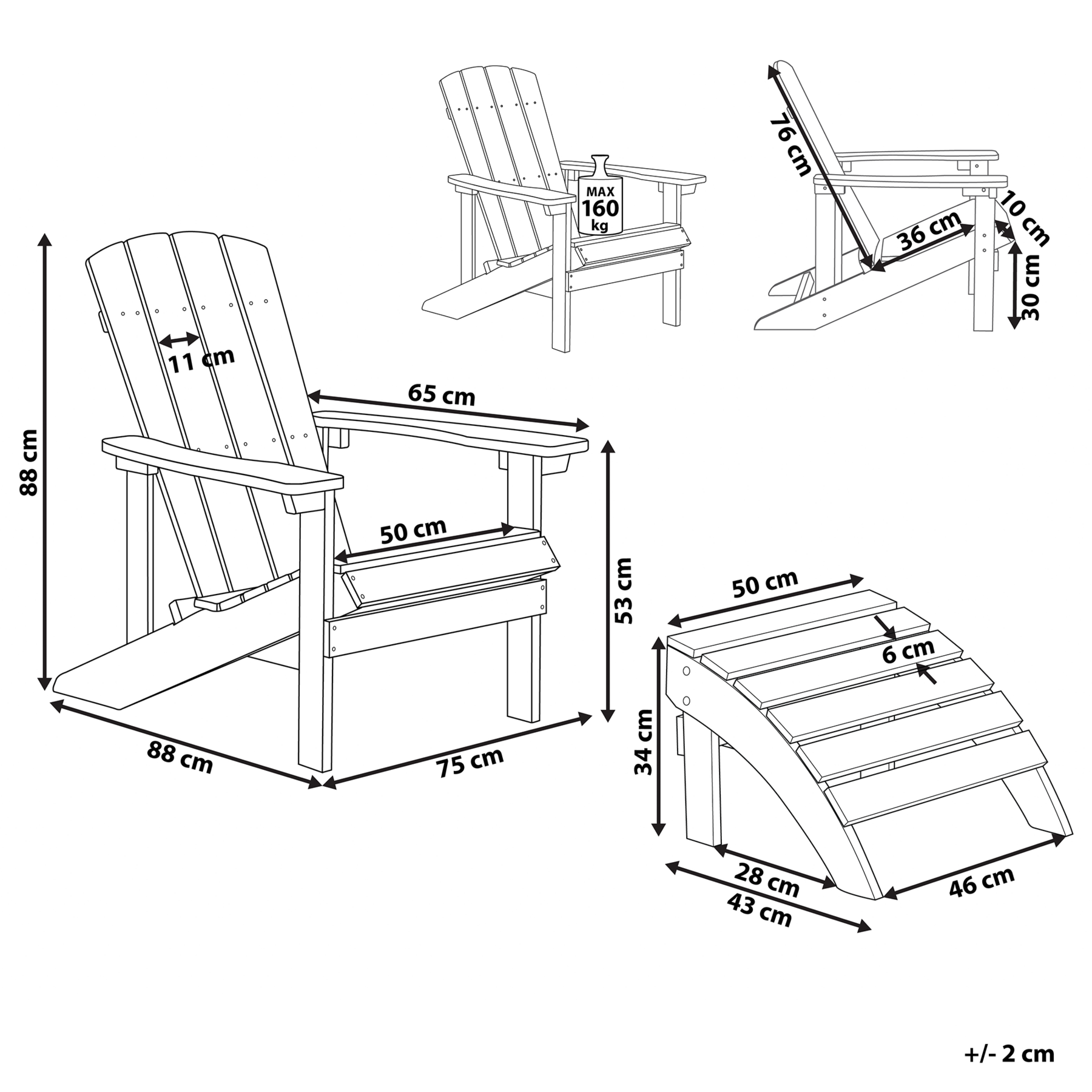 Beliani - ADIRONDACK - Tuinstoel met voetenbank - Grijs - Kunsthout
