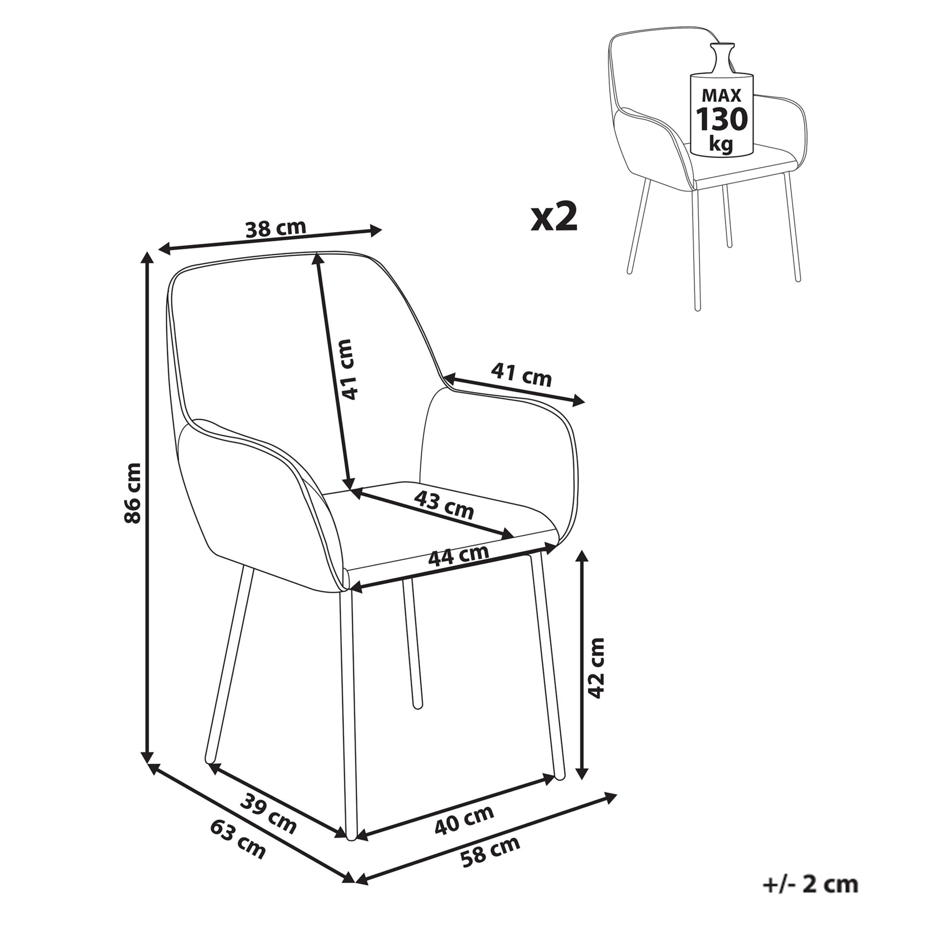 | Maximale draagkracht | 130 kg |