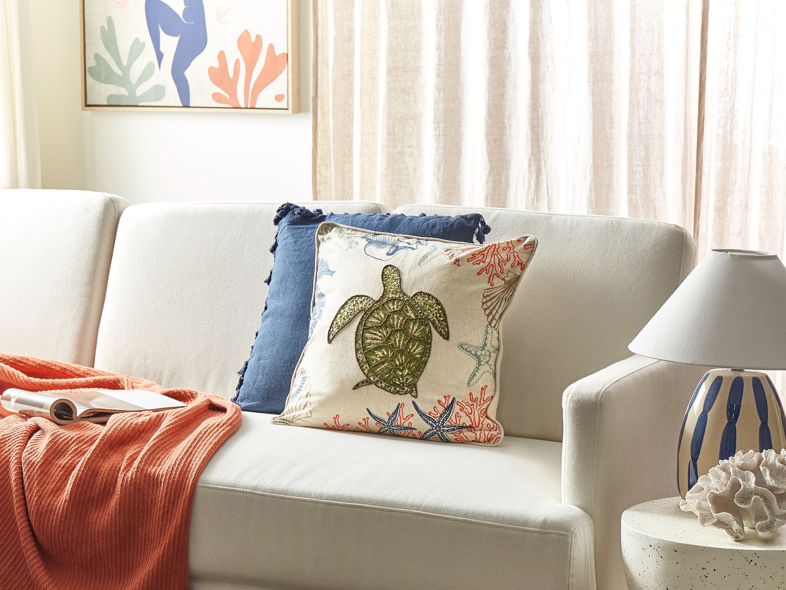 Beliani - ALGAE - Sierkussen - Beige - 45 x 45 cm - Linnen