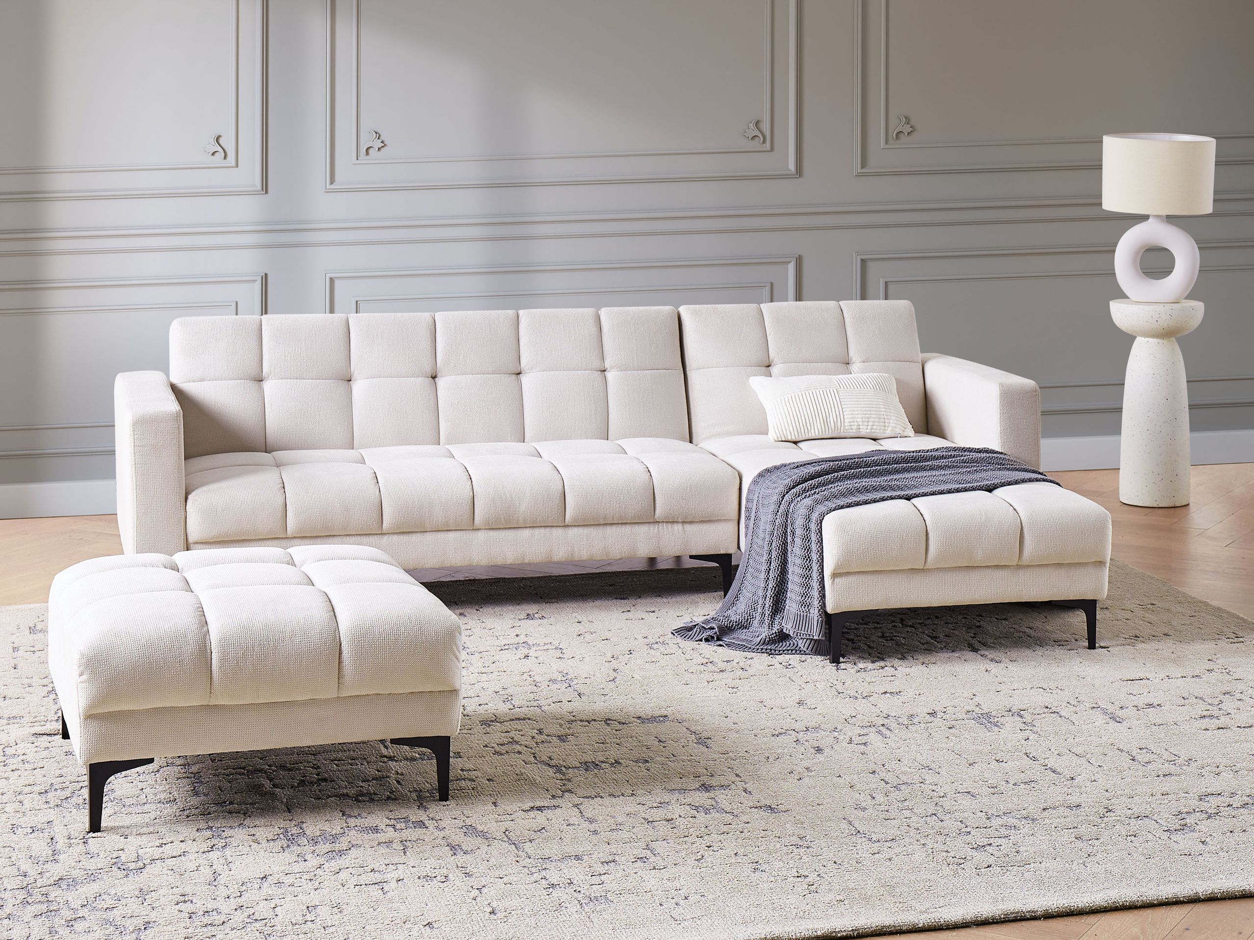 Beliani-ALNES-Hoekbank met ottomaan-Gebroken wit-Linkszijdig-Polyester