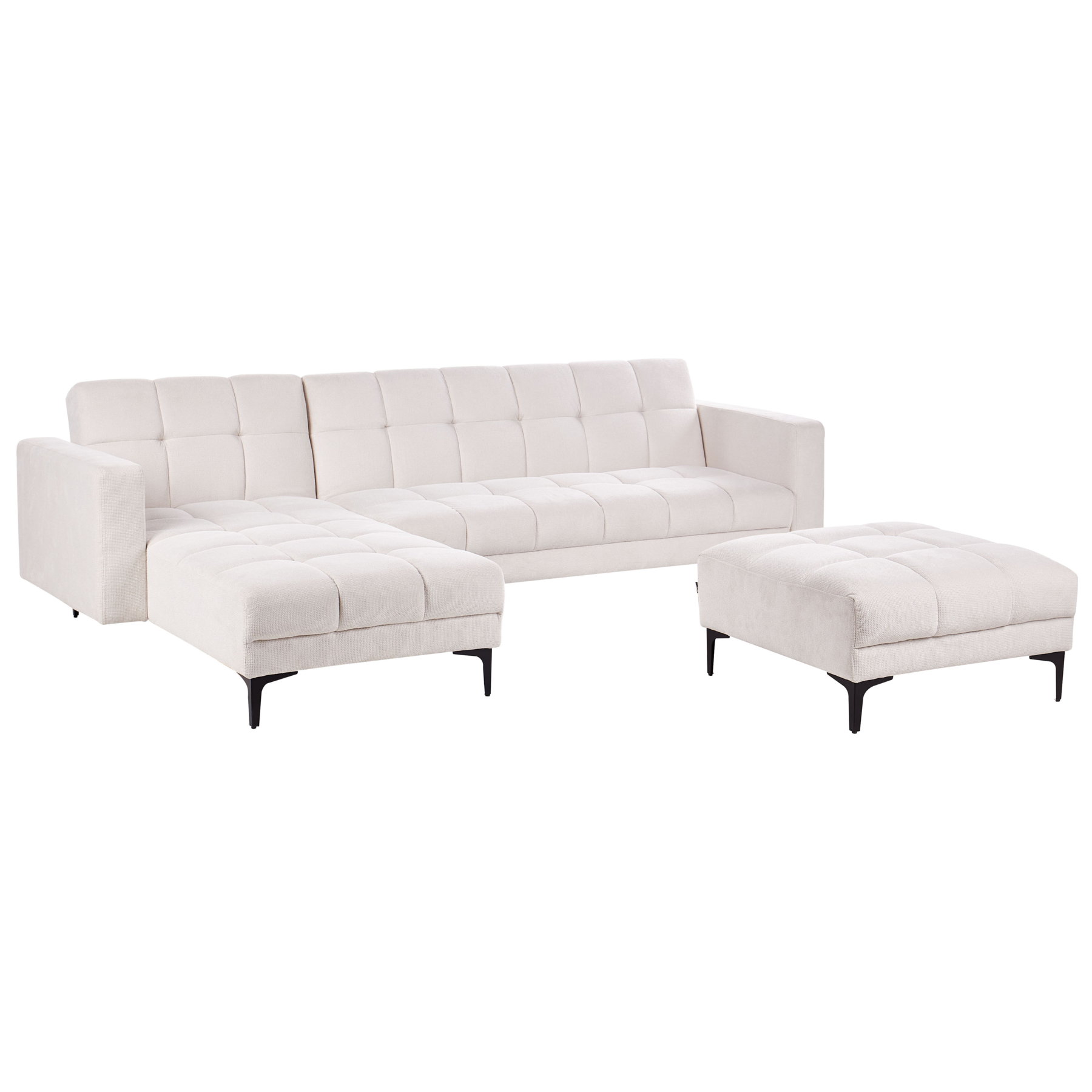 Beliani-ALNES-Hoekbank met ottomaan-Gebroken wit-Rechts-Polyester