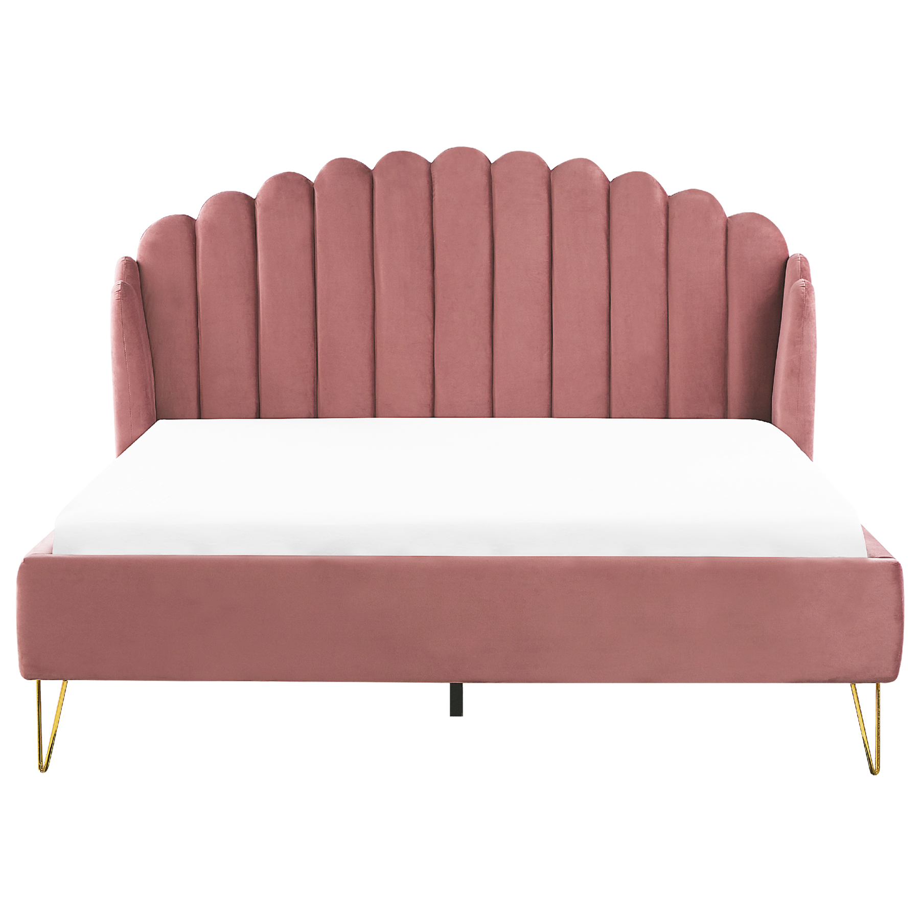 Beliani - AMBILLOU - Tweepersoonsbed - Roze - 180 x 200 cm - Fluweel