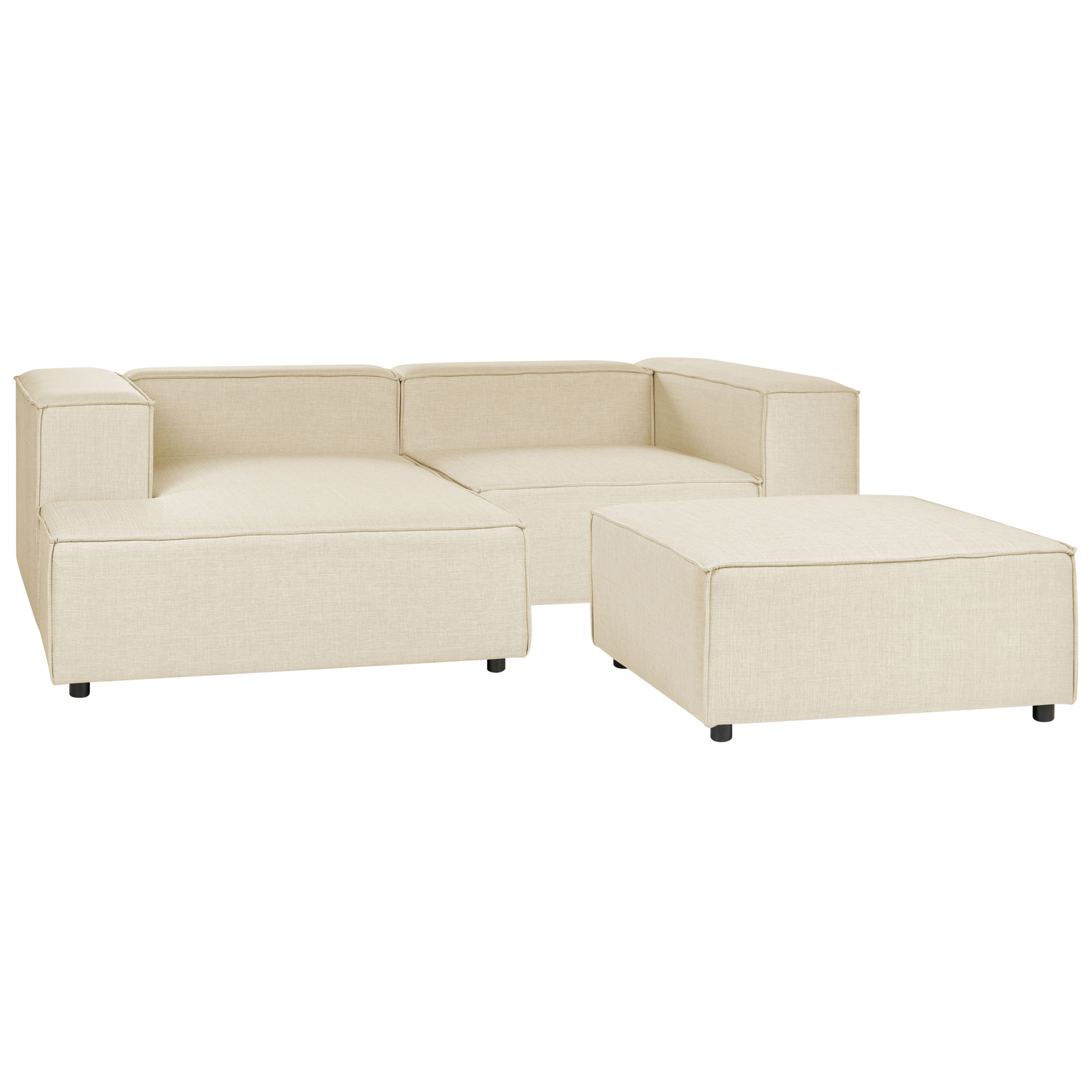 Beliani-APRICA-Tweezitsbank met ottomaan-Beige-Rechterzijde-Linnen