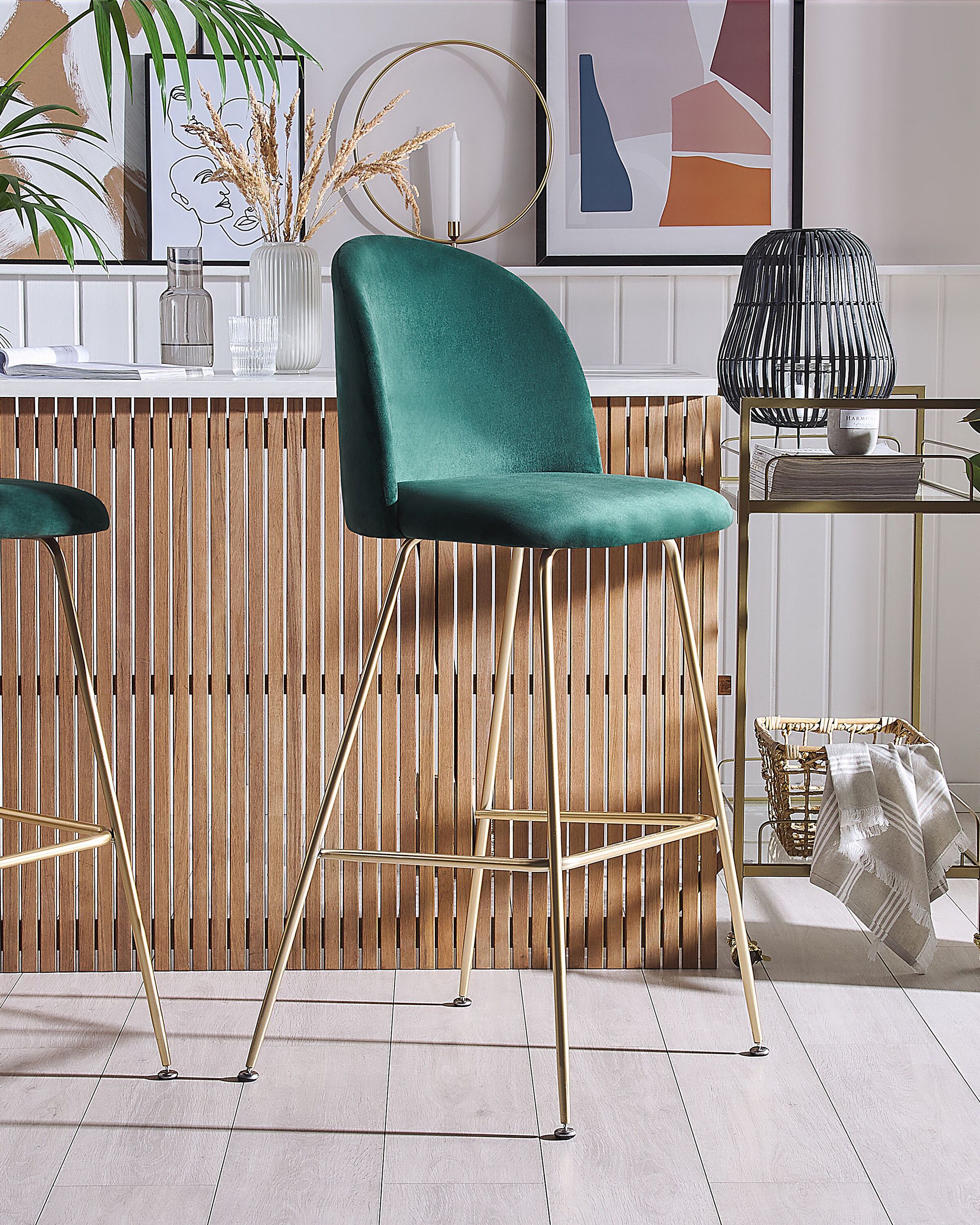 Beliani - ARCOLA - Barkruk - Smaragdgroen - Fluweel