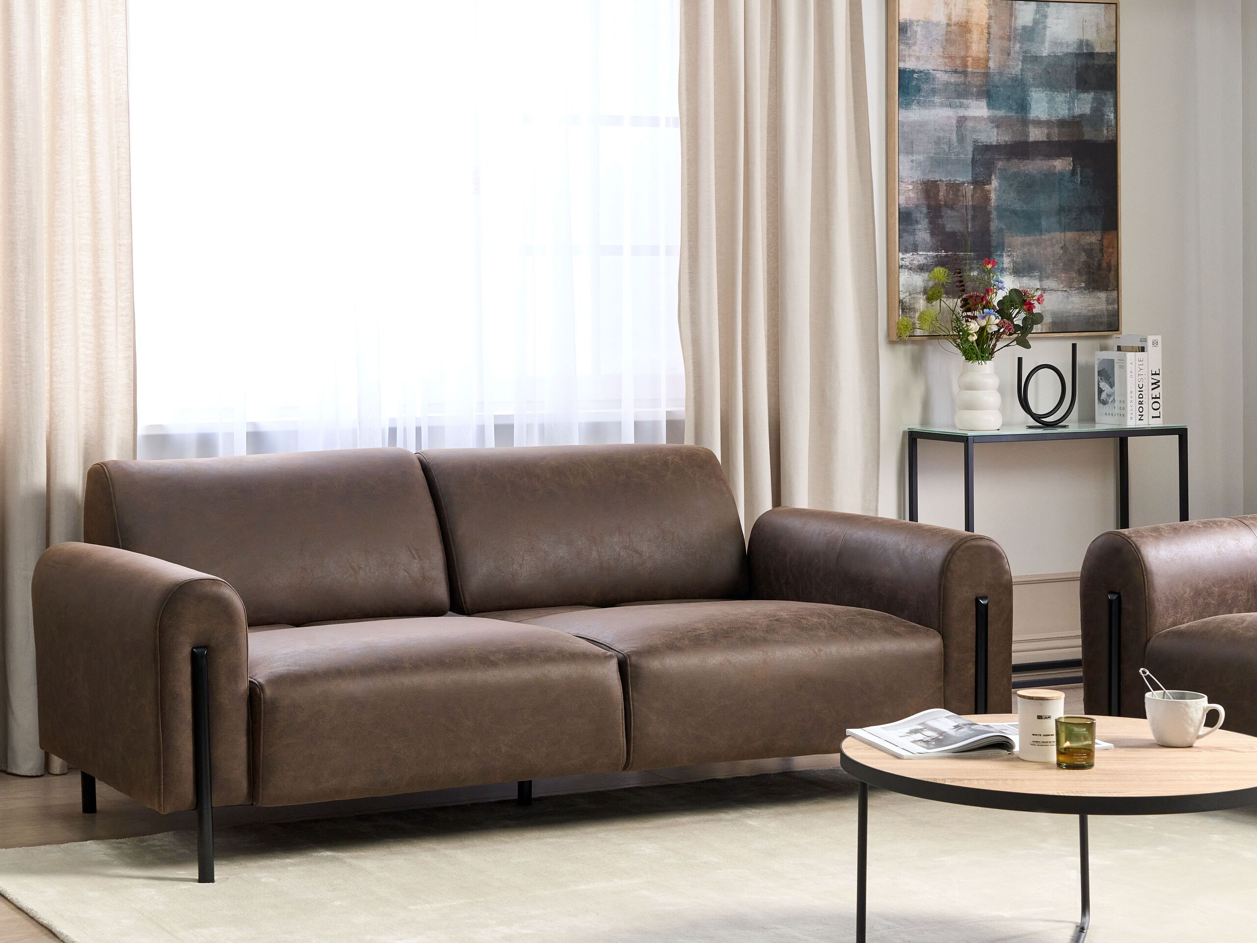 Beliani - ASKIM - Driezitsbank - Donkerbruin - Polyester