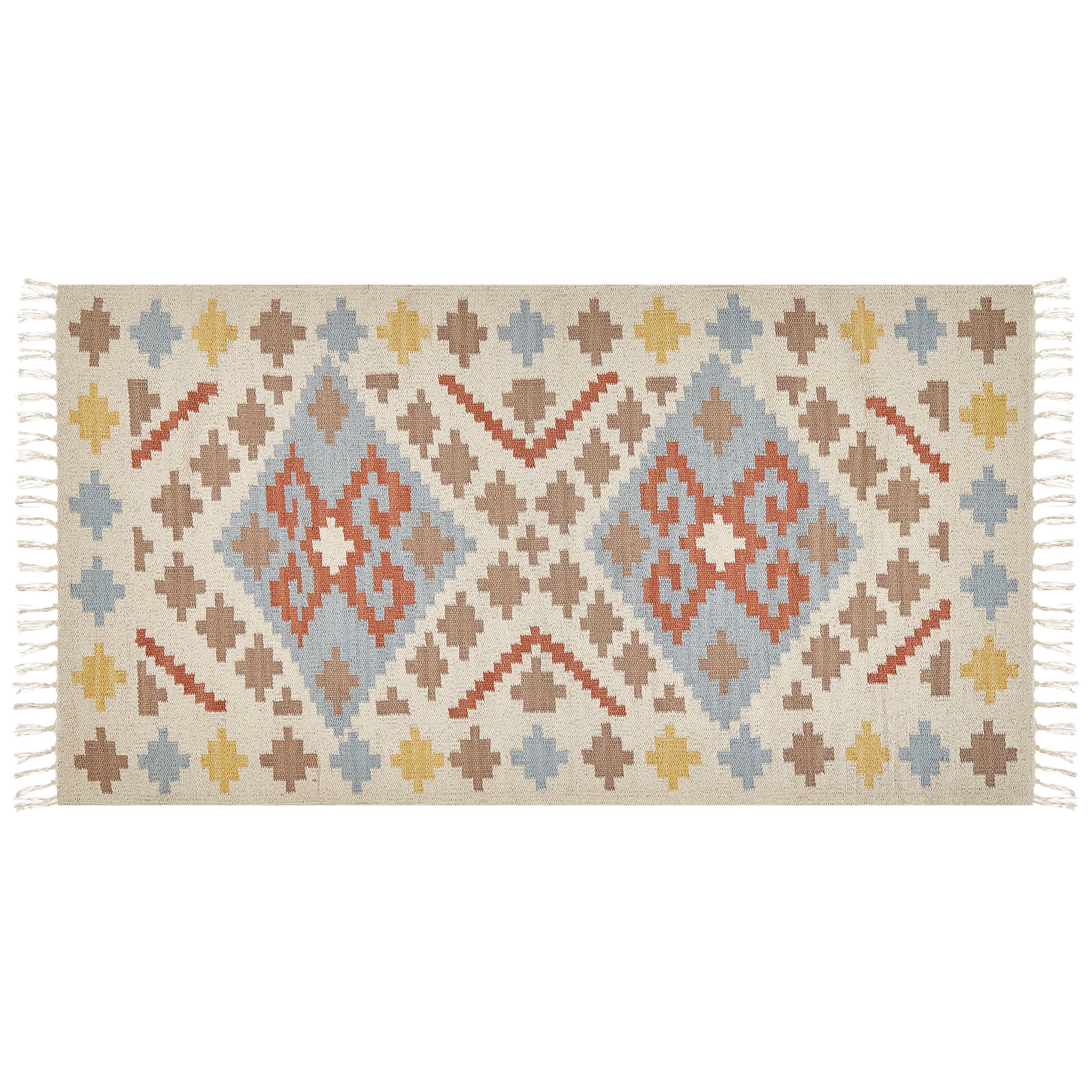 Beliani-ATAN-Kelim vloerkleed-Meerkleurig-80 x 150 cm- Katoen