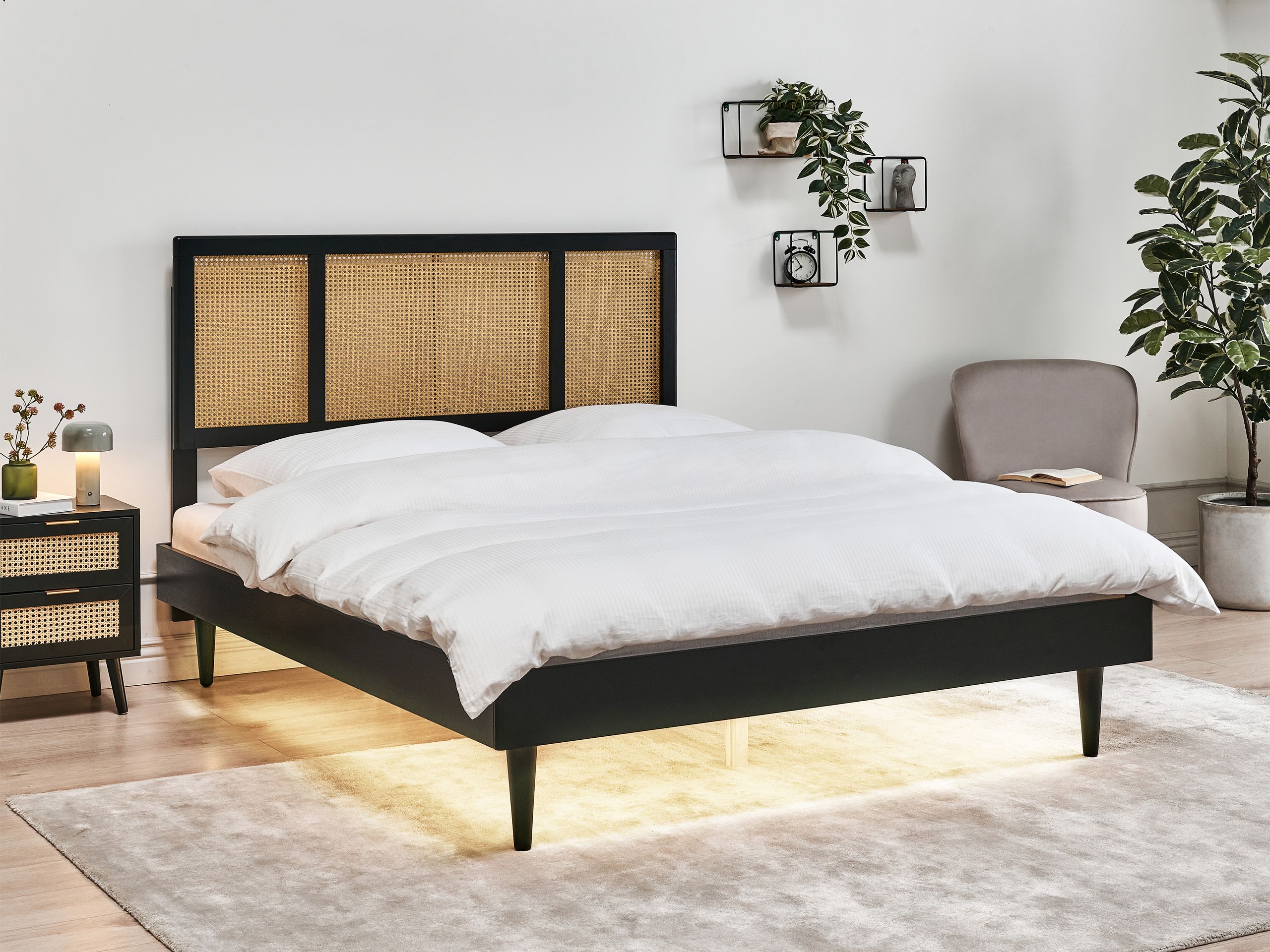 Beliani-AURAY-Tweepersoonsbed LED-Zwart-160 x 200 cm-Rubberhout