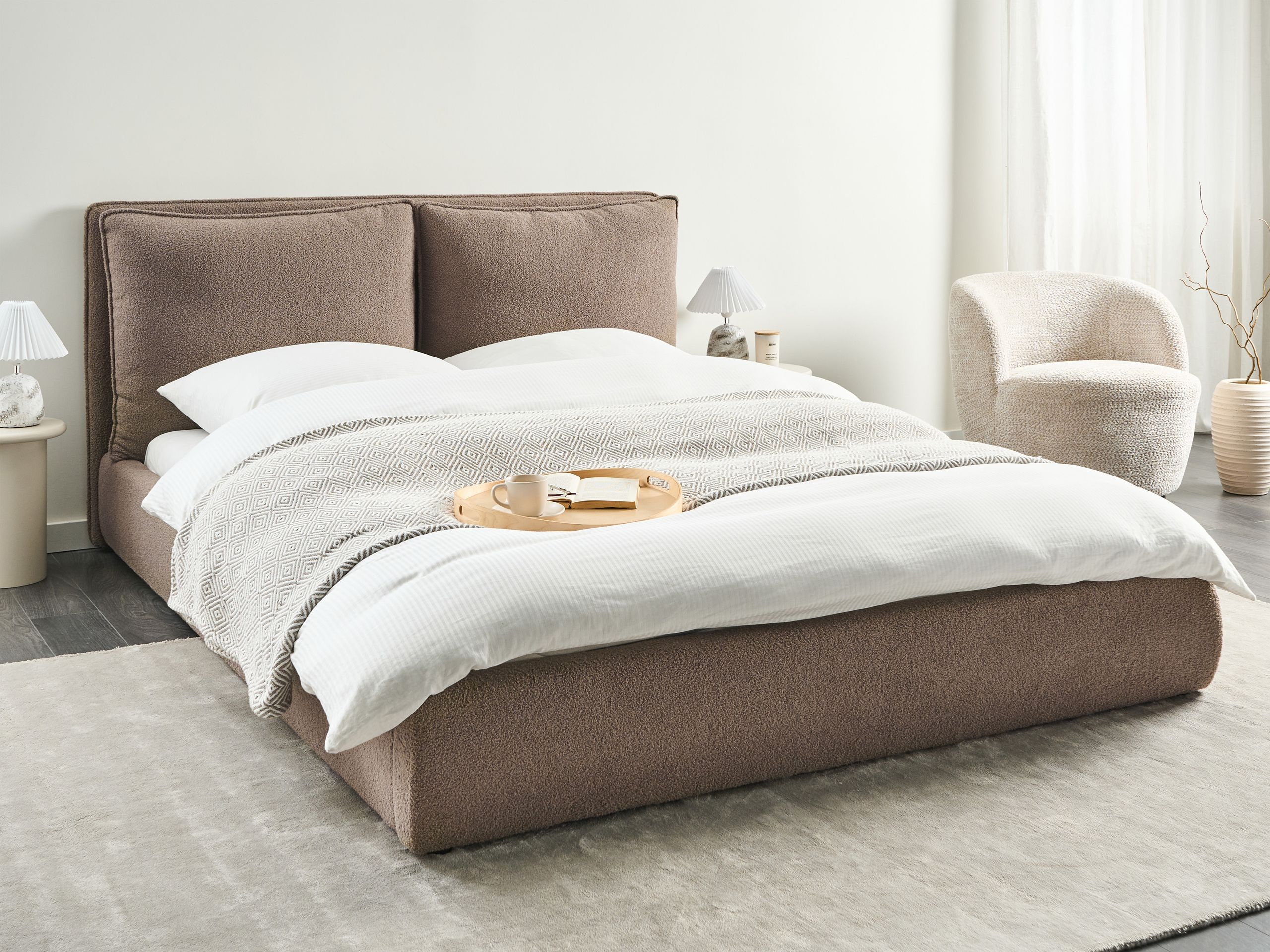 Beliani - BAJONNA - Tweepersoonsbed - Bruin - 160 x 200 cm - Bouclé