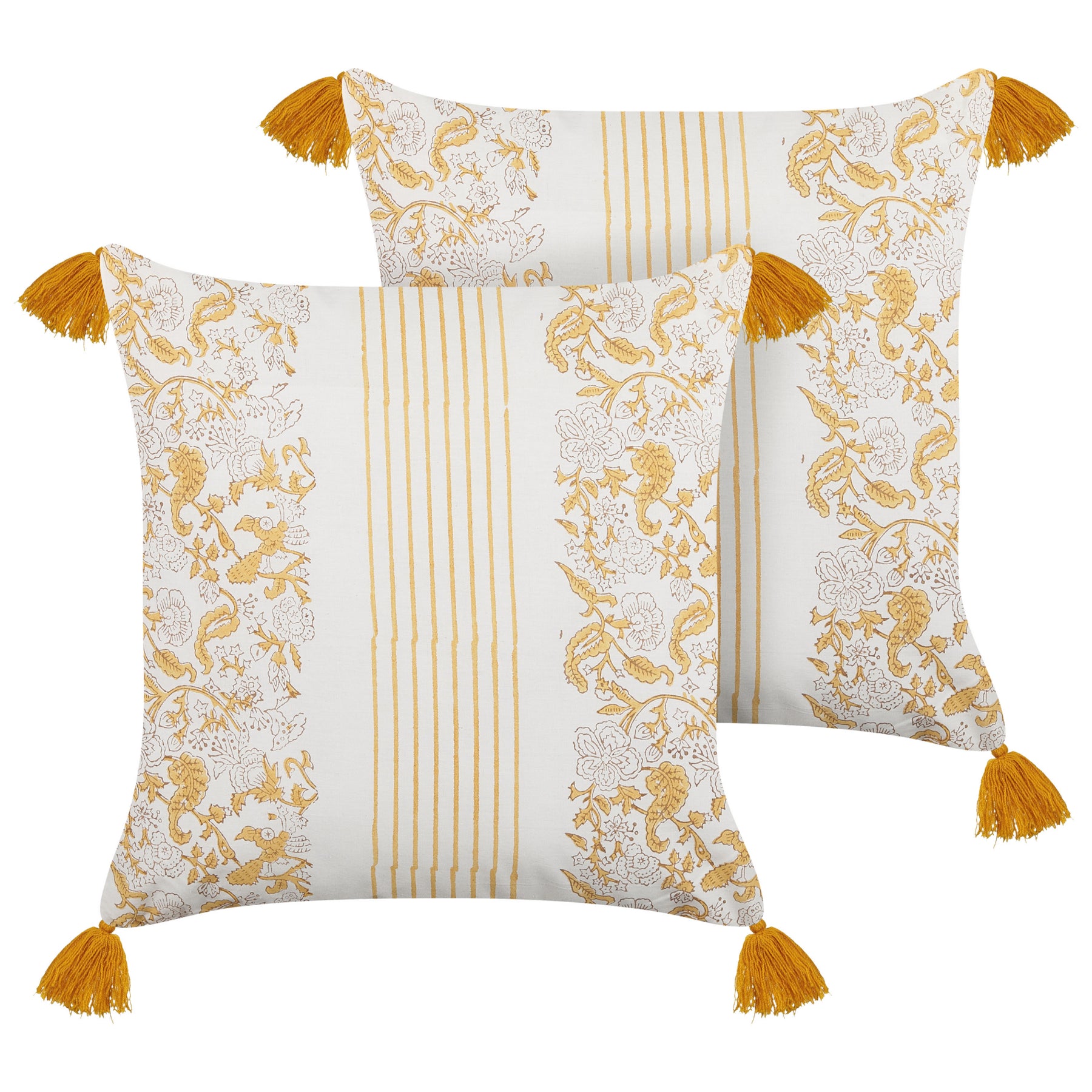 Beliani - BILOBA - Sierkussen set van 2 - Geel - 45 x 45 cm - Katoen