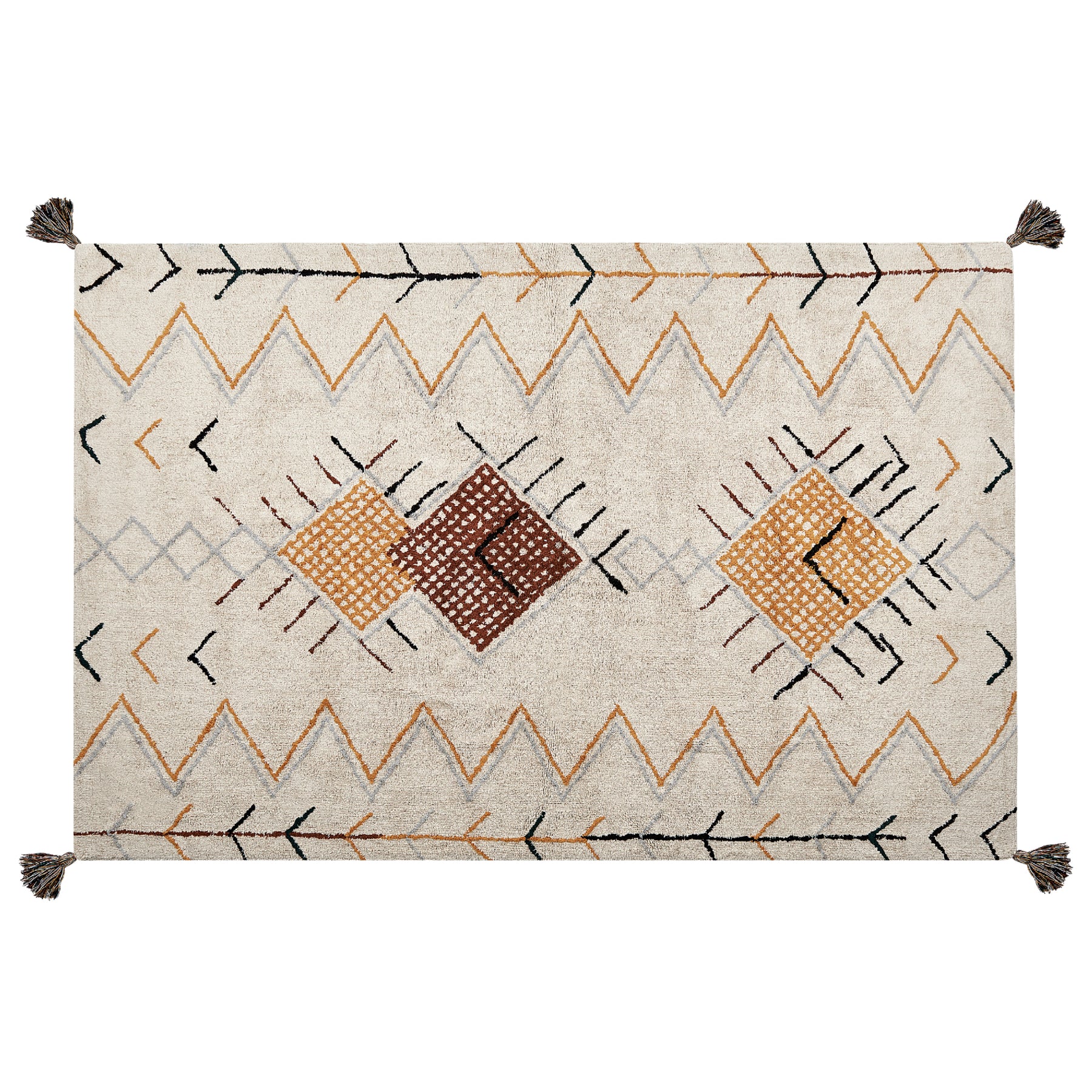 Beliani - BOLAY - Laagpolig vloerkleed - Beige - 140 x 200 cm - Katoen