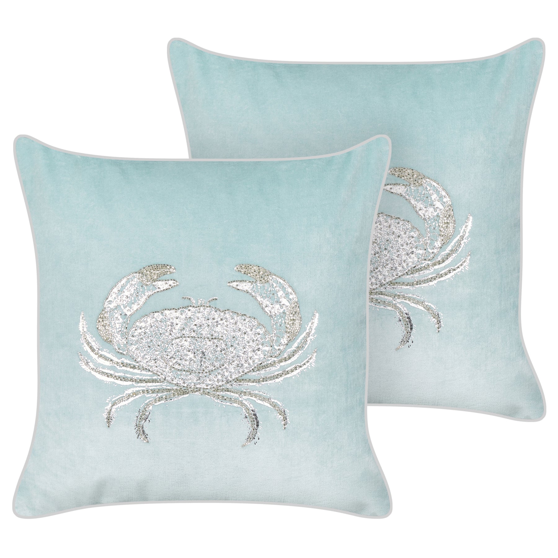 Beliani-BOSSIELLA-Sierkussen set van 2-Blauw-45 x 45 cm-Fluweel