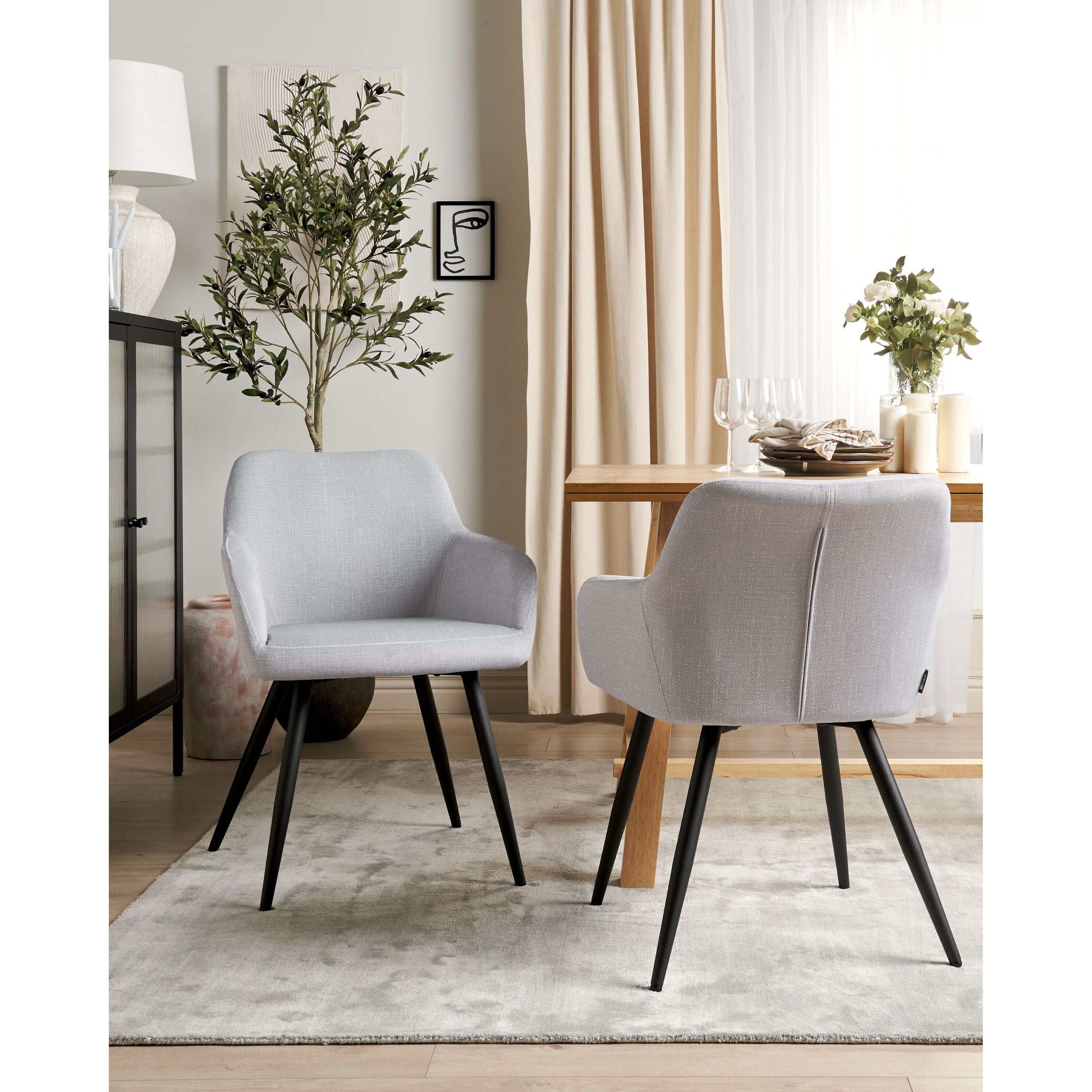Beliani - CASMALIA - Eetkamerstoel set van 2 - Lichtgrijs - Fluweel