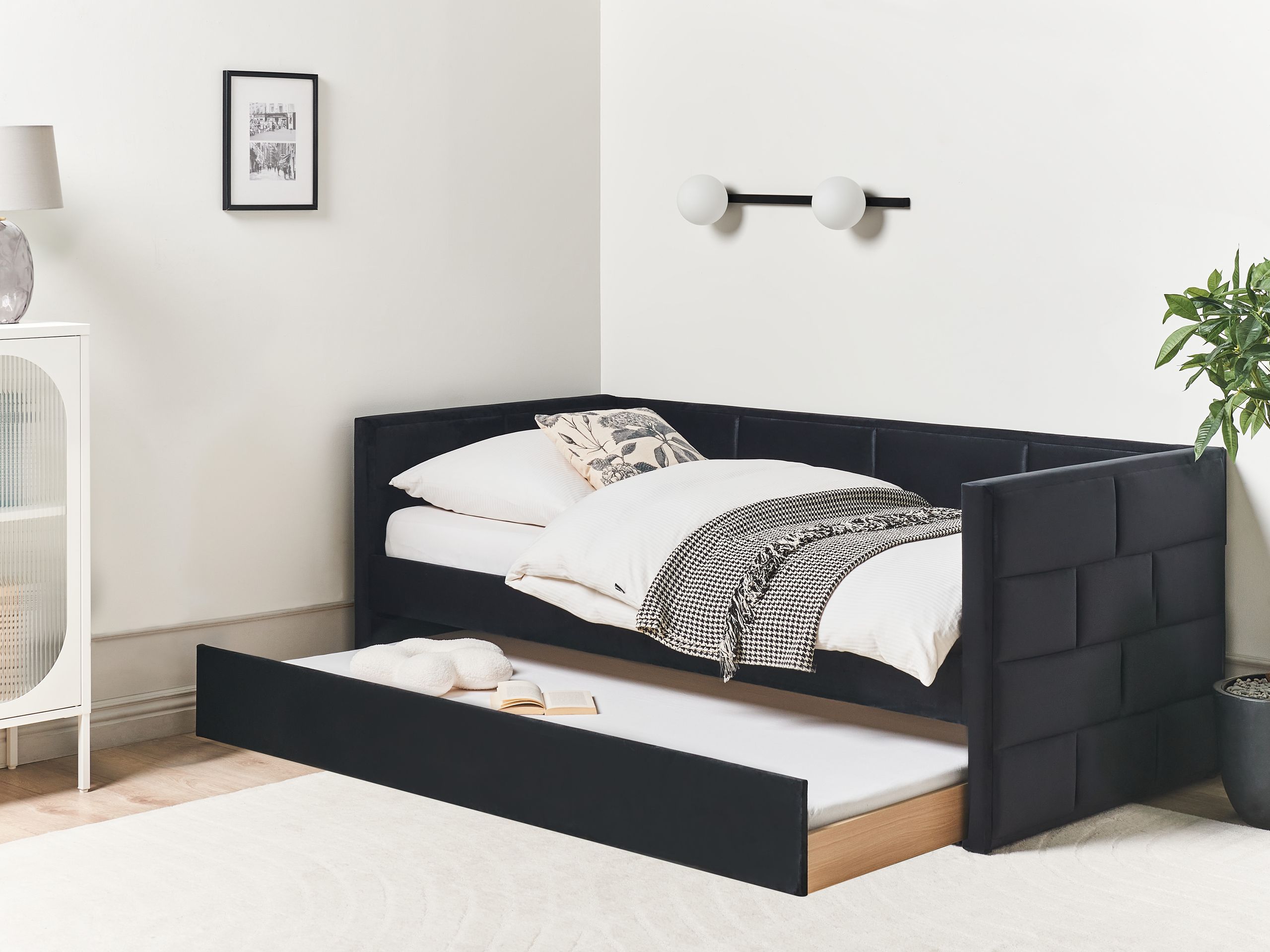 Beliani - CHAVONNE - Slaapbank - Zwart - 90 x 200 cm - Fluweel