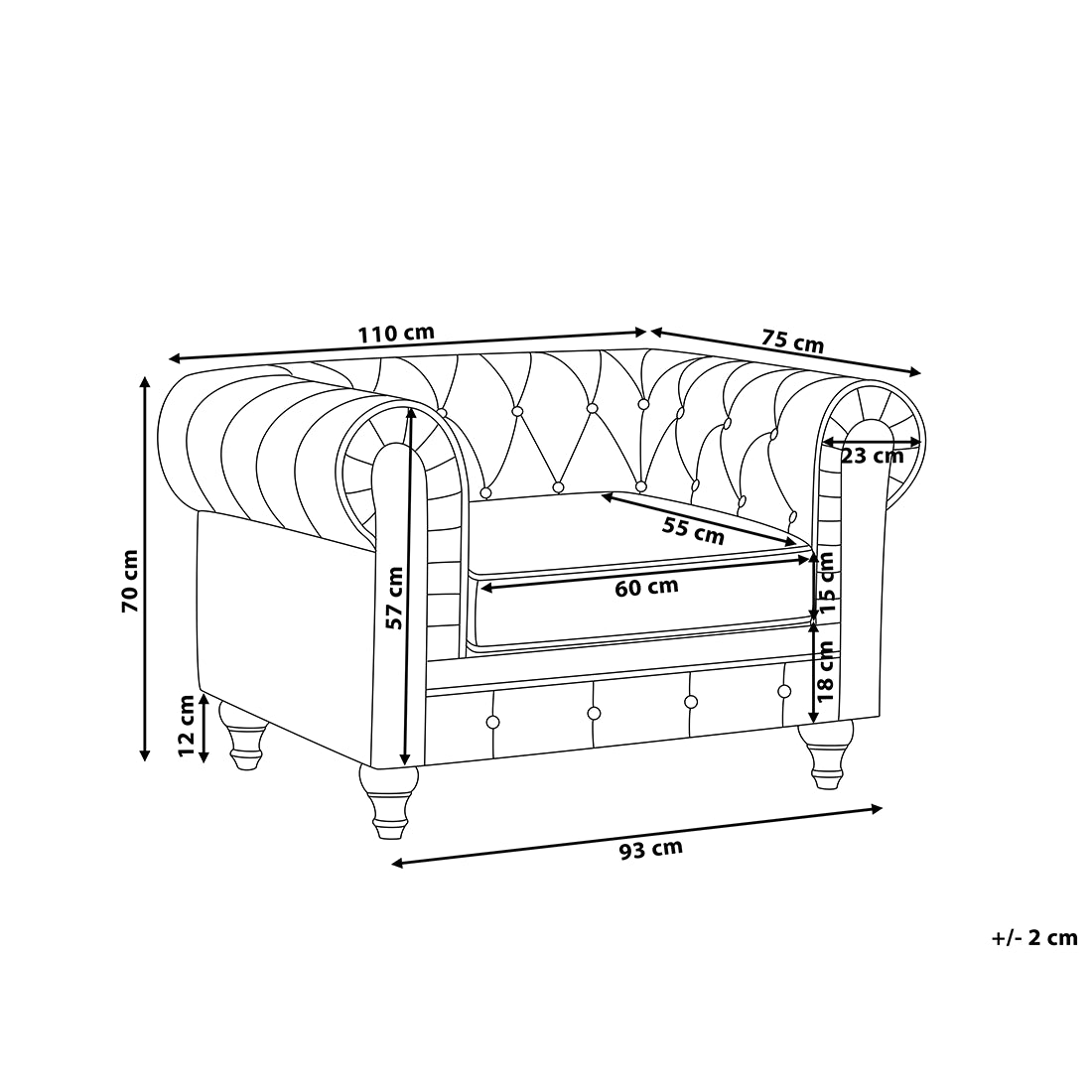 | Hoogte armleuning | 70 cm |