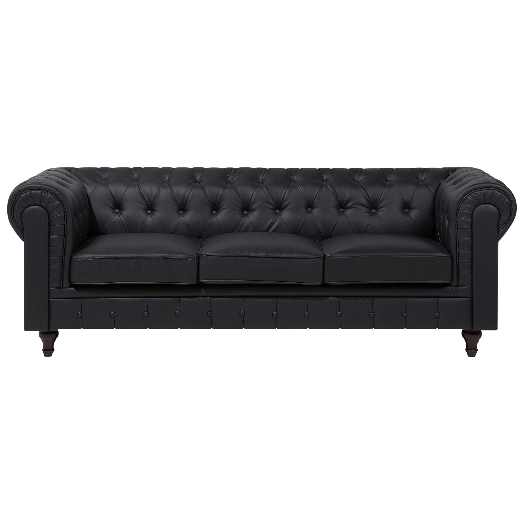 Beliani - CHESTERFIELD L - Chesterfield bank - Zwart - Kunstleer