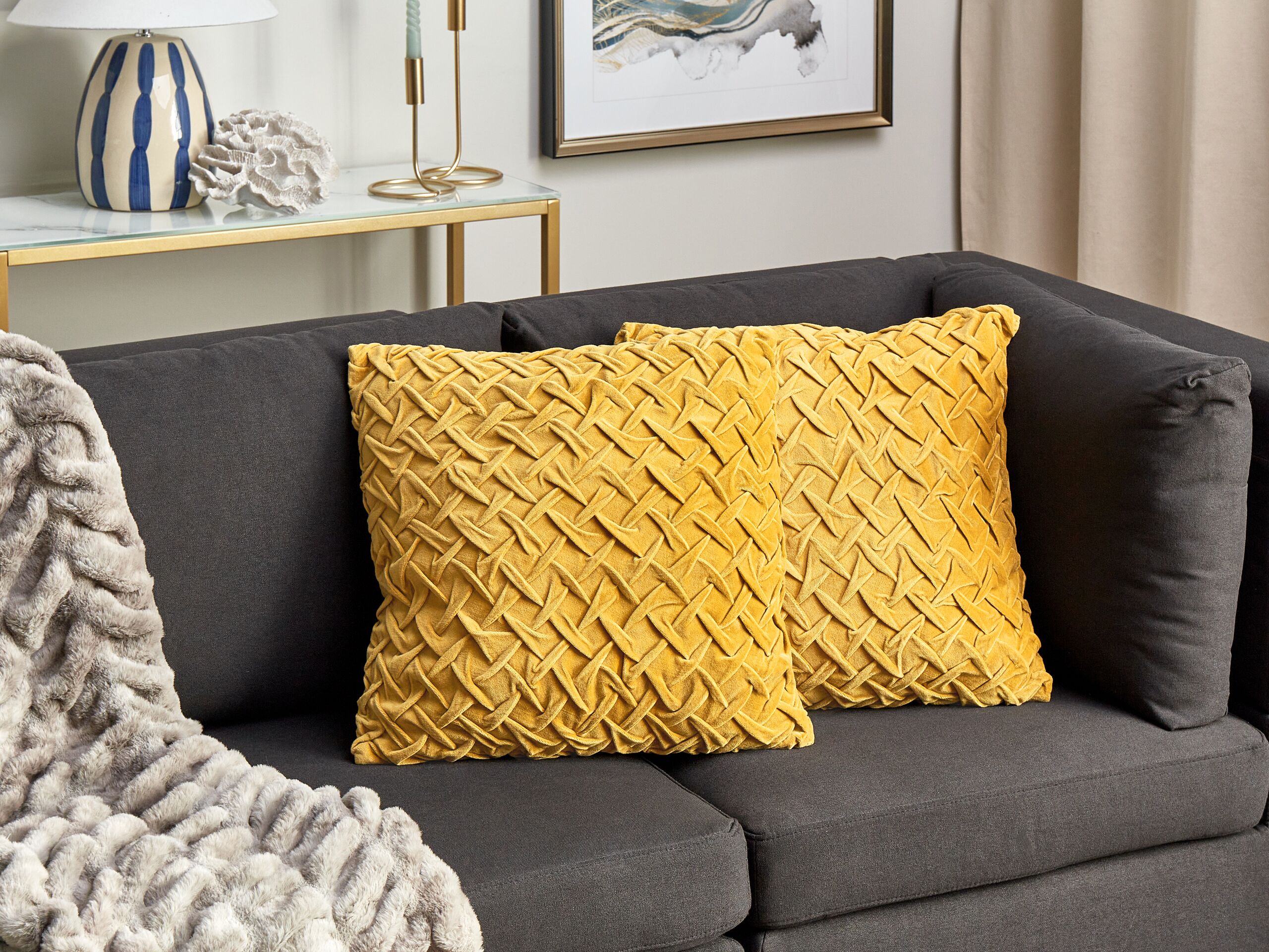 Beliani - CHOISYA - Sierkussen set van 2 - Geel - 45 x 45 cm - Fluweel